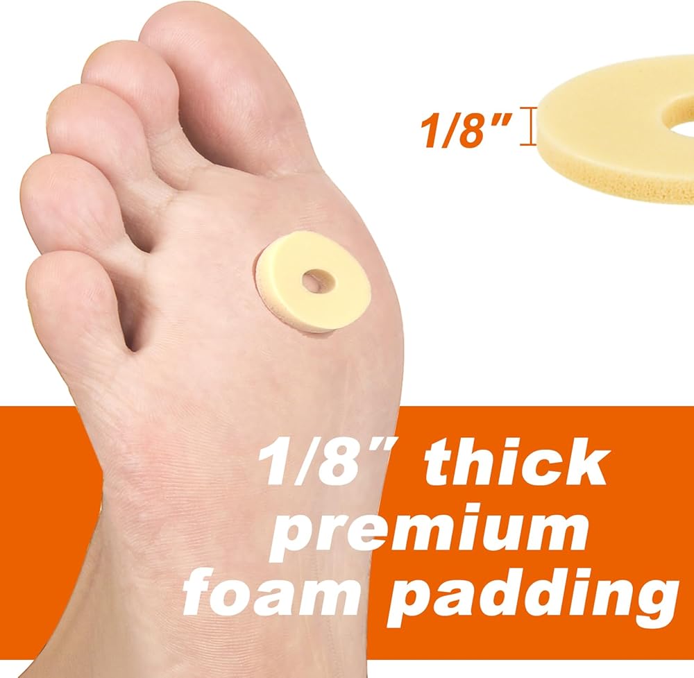 Premium Comfort – Made with a soft, flexible foam, these protective foot callus cushions are approximately 0.67" x 0.67" across. Fits to all feet sizes.