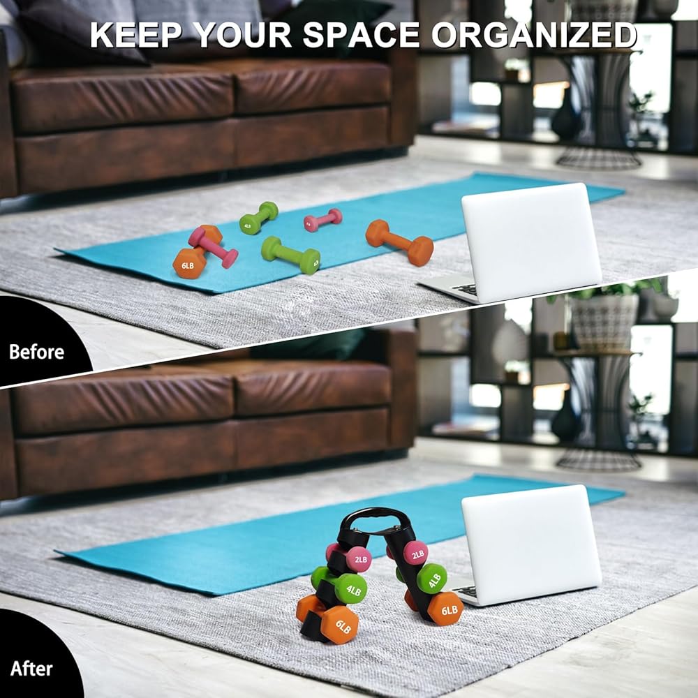 حامل دمبل لصالة الألعاب الرياضية المنزلية: حامل دمبل قابل للطي لتخزين الدمبل للنساء 2 رطل 4 رطل 6 رطل منظم دمبل صغير