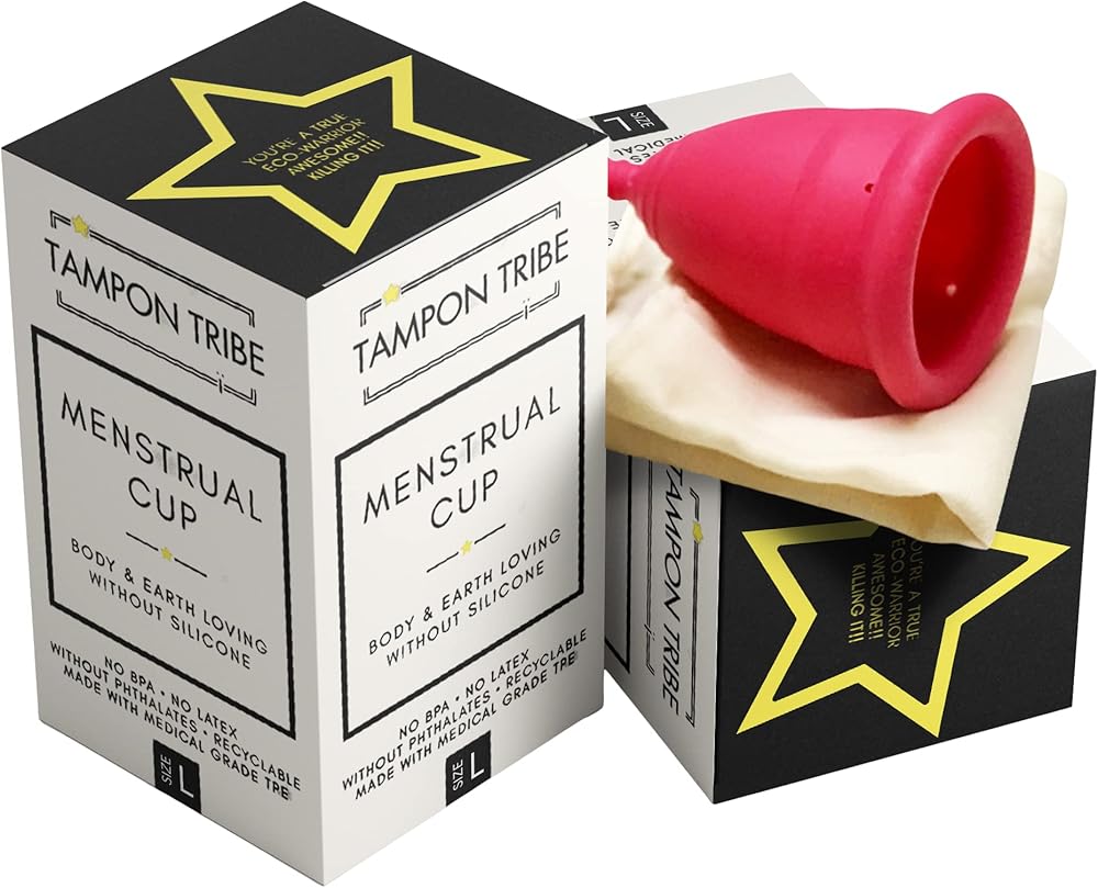 تامبون ترايب - كوب الحيض القابل لإعادة الاستخدام، سهل التنظيف، أساسي للدورة الشهرية، مصنوع من مادة TPE، خالٍ من السيليكون للعناية الأنثوية، متوسط، سعة 25 مل