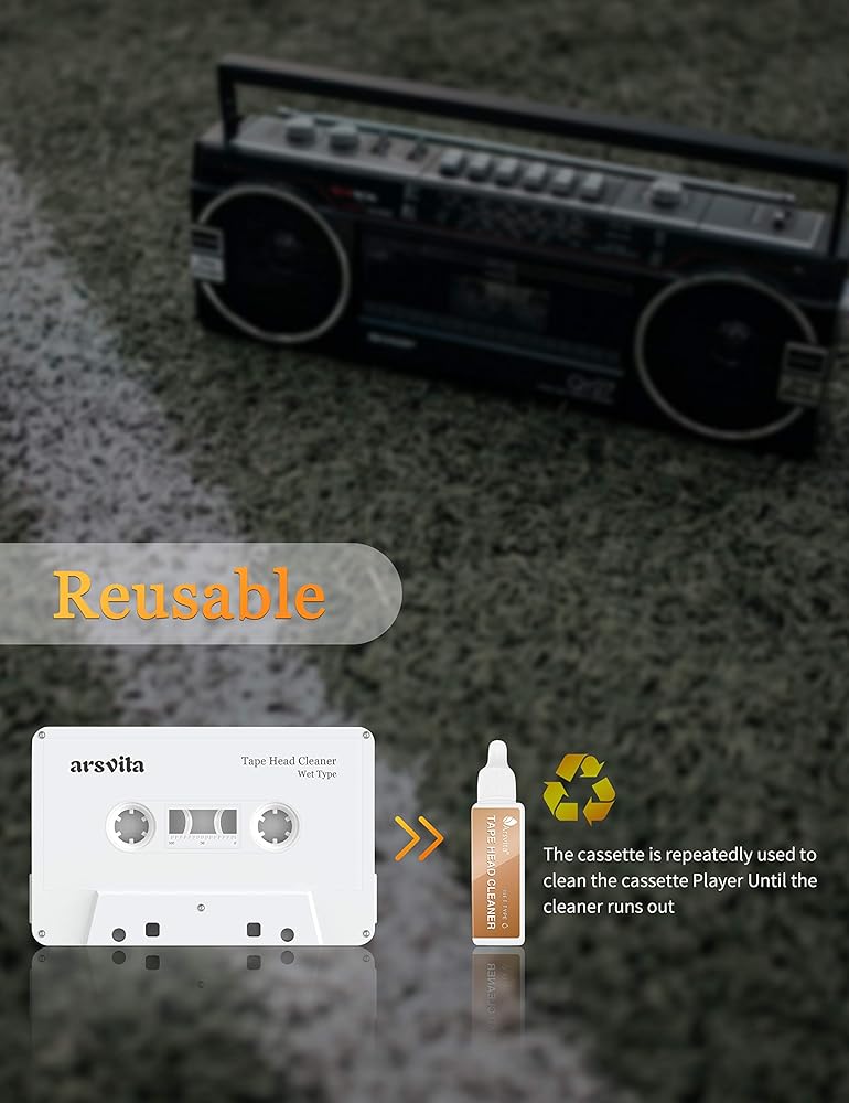 - 【تشغيل سهل】 ضع 3-4 قطرات من سائل التنظيف على شريط التنظيف وقم بتشغيل الكاسيت العادي.