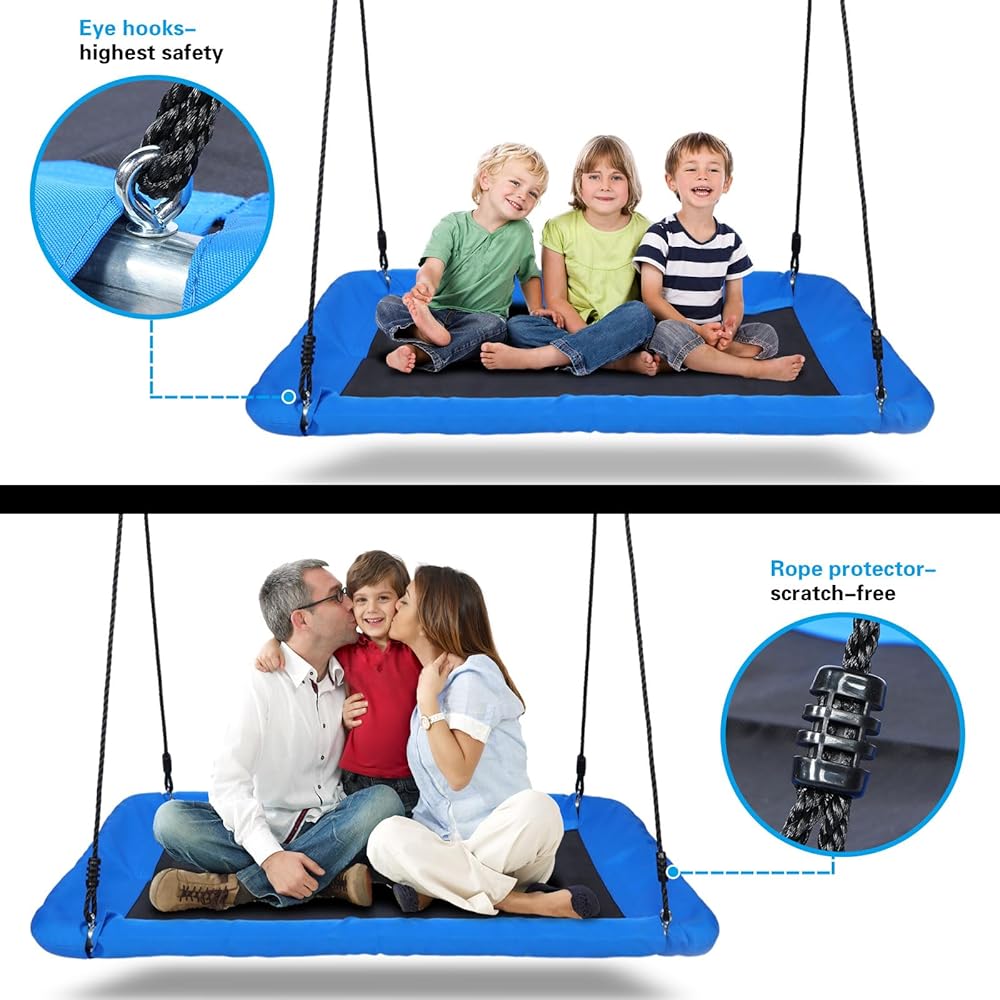 أرجوحة متينة كبيرة الحجم: إطار فولاذي مقاس 60 × 32 بوصة مع مقعد من القماش المنسوج الضيق يناسب 5 أطفال أو شخصين بالغين. وزن يصل إلى 700 رطل كمنصة أرجوحة رائعة. أكثر أمانًا للطفل للتأرجح لفترة طويلة.