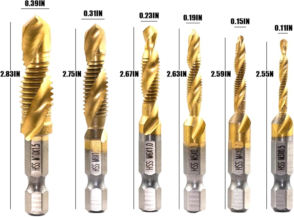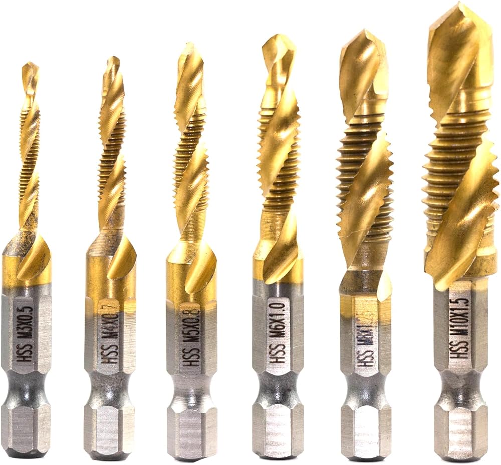 6 Pack Metric Thread Drill Tap Bits Set, M3-M10 Metric Drill Taps for Steel Aluminum, Sheet Metal and Other Hard Metal Thin Plates