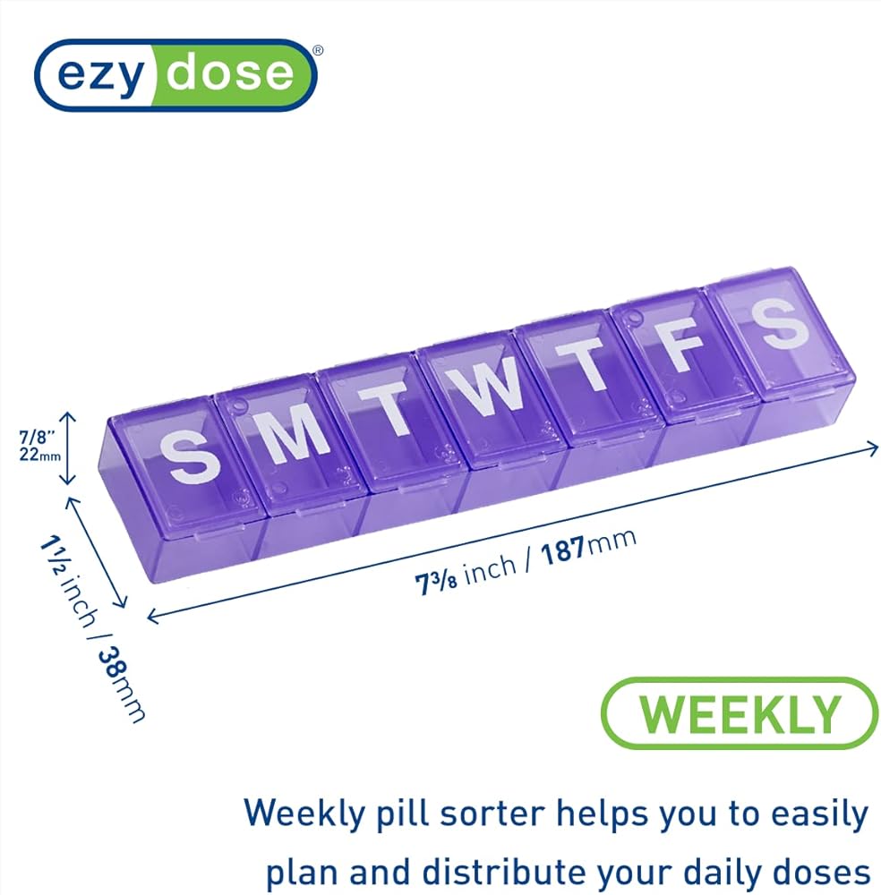 علبة حبوب منع الحمل أسبوعيًا (7 أيام) من EZY DOSE، مخطط طبي، صندوق منظم للفيتامينات، مريح وسهل الاستخدام، مقصورات كبيرة جدًا، مناسبة للسفر، أرجواني، خالية من مادة BPA