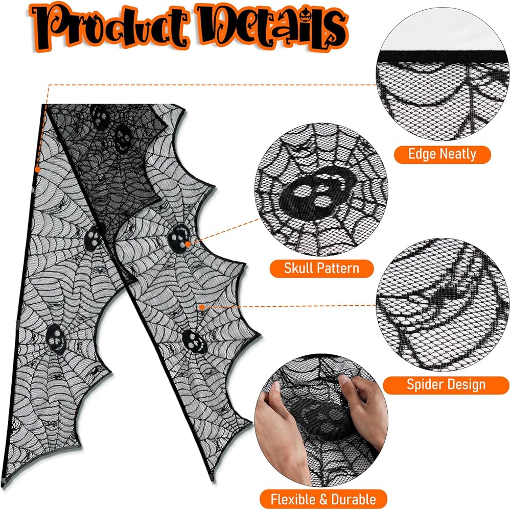 【تصميم فريد من نوعه لجمجمة الهالوين】: مع تصميم قطعة واحدة بدون خياطة يجمع بين خيوط العنكبوت المعقدة وأنماط الجمجمة المخيفة، فإن وشاح الهالوين العنكبوتي هذا هو المقاس المثالي لأجواء الهالوين المخيفة. ارفع ديكور الهالوين الخاص بك من خلال ديكور جمجمة العنكبوت من الدانتيل الأسود الخاص بنا واجعل حفلة الهالوين الخاصة بك محل تقدير الجميع.