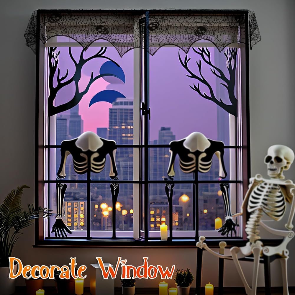 【مناسبة للعديد من المناسبات】من تجمعات الهالوين ويوم الموتى إلى ليالي الأفلام المخيفة والكرنفالات والمناسبات التنكرية، فإن ديكور جمجمة شبكات العنكبوت السوداء الخاصة بنا يرفع من أجواء أي مناسبة دون عناء. يُضفي وشاح رف الهالوين هذا هالة من الغموض والسحر والجاذبية التي ستبقى بالتأكيد في ذكريات ضيوفك.