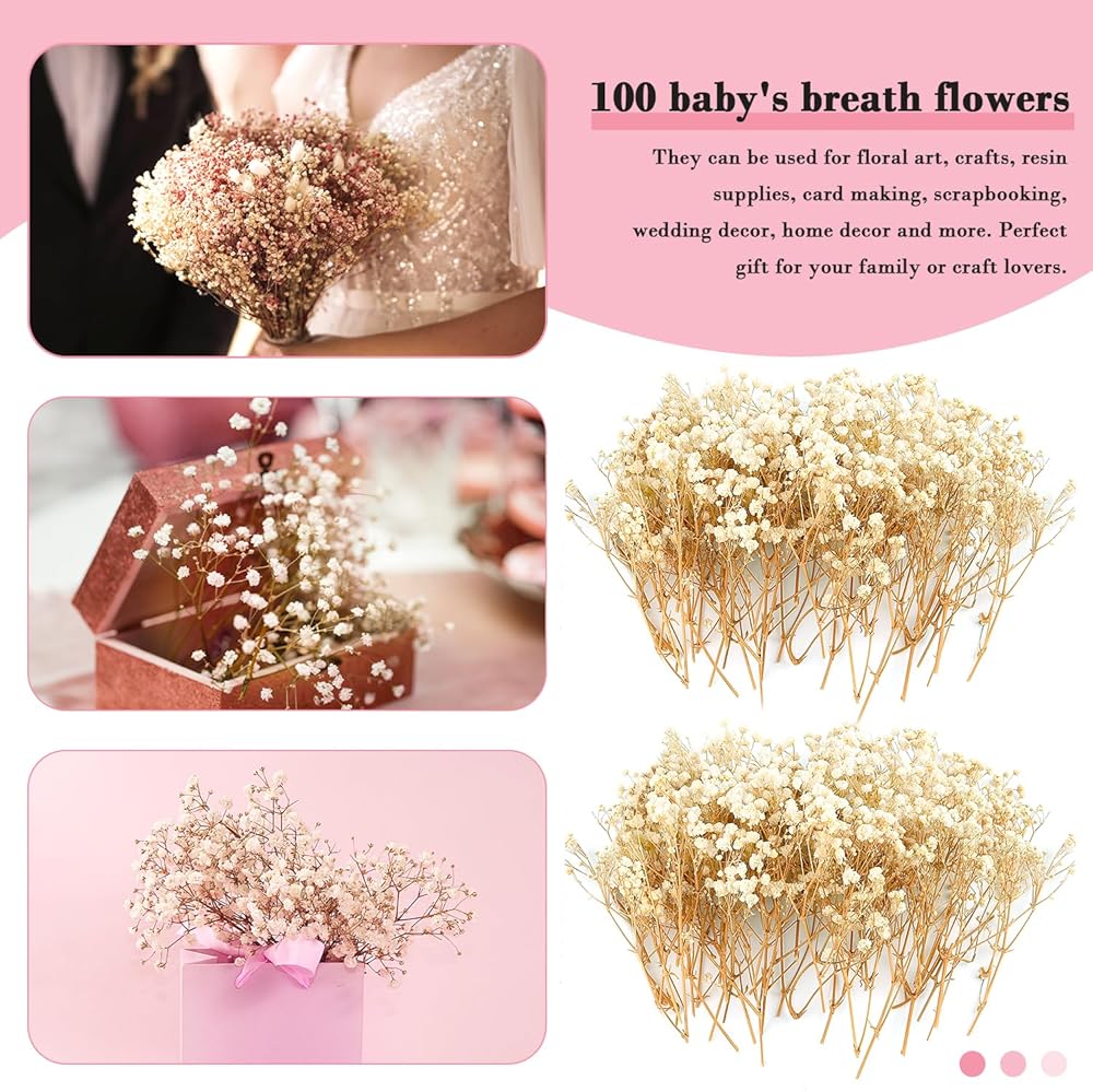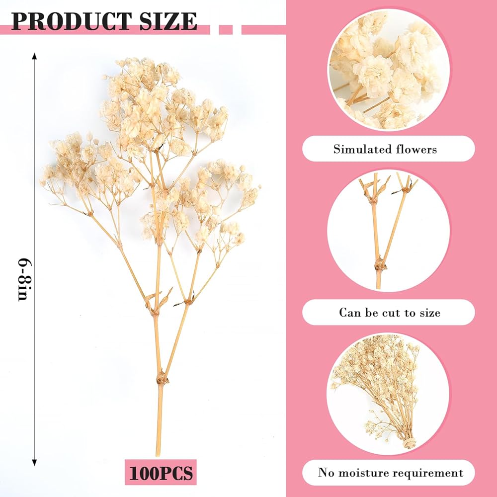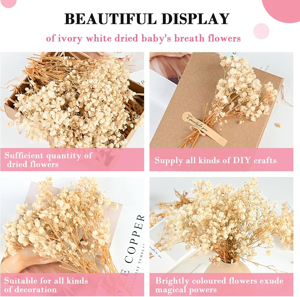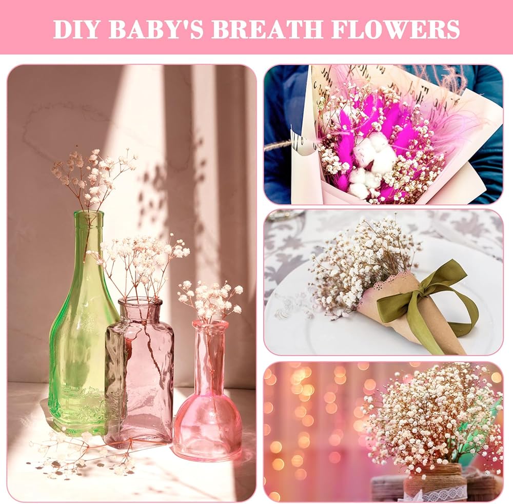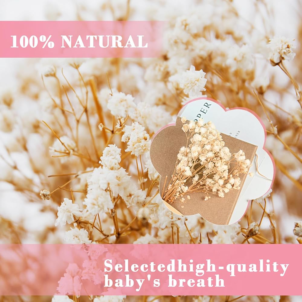 These natural dried baby's breath flower bulk is suitable for home, offices, wedding decoration, restaurants, birthday parties, graduation ceremonies, banquets, celebrations and other occasions; This is a good supply for all kinds of DIY crafts, such as bridal bouquets, making greeting cards, banquet invitation cards, scrapbook decorations, resin supplies, DIY cell phone cases, candle making supplies, hand account scrapbooking etc. (A small part of the flower head may fall off during use, which is normal)