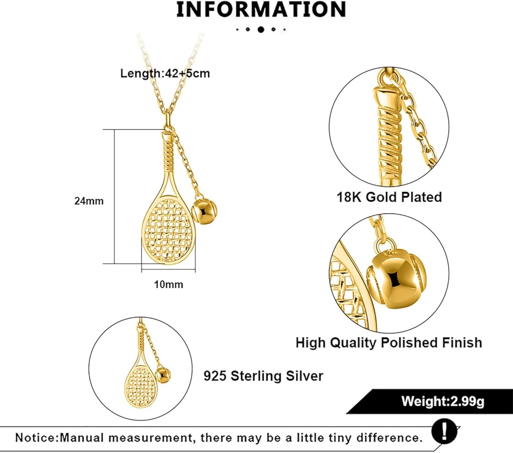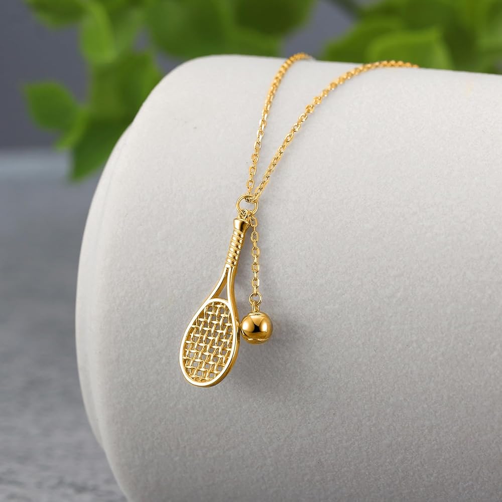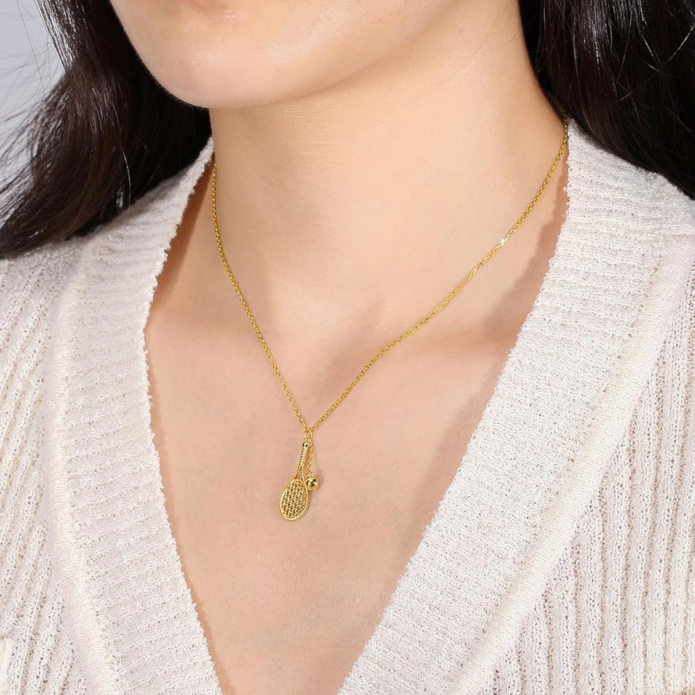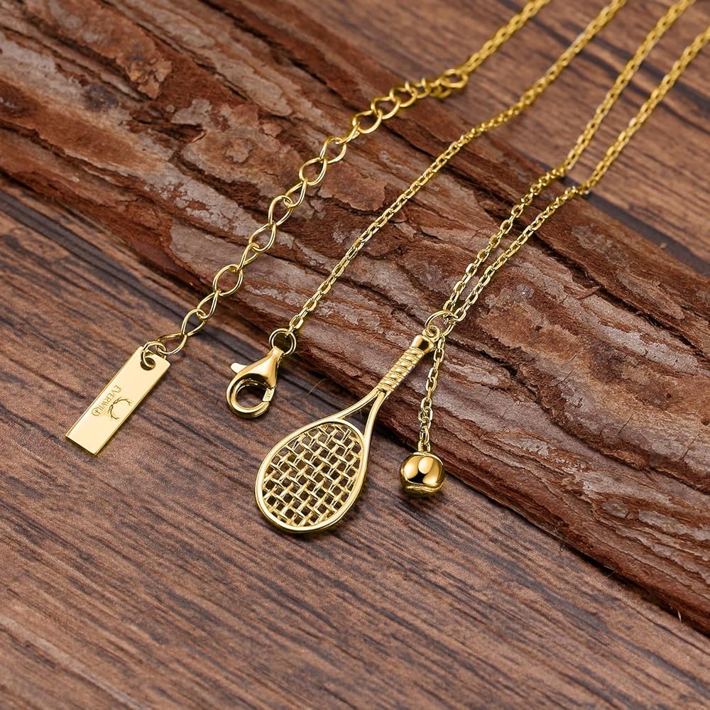 قلادة مضرب تنس وكرة من Lovematch - قلادة من الذهب عيار 18 قيراط للنساء | هدية لها، هدية لأعياد الميلاد، وعيد الحب، والذكرى السنوية للزفاف، وهدايا عيد الميلاد لمحبي التنس
