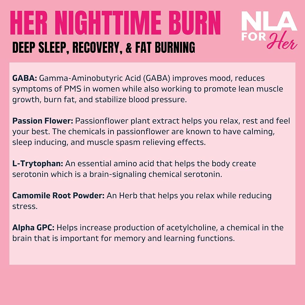 حارق الدهون: Her Nighttime Burn هو حارق الدهون المبتكر لدينا. يعمل مزيجنا المركز من المكونات على تعزيز نوم أعمق وأكثر إشباعًا، وتعزيز مستويات السيروتونين، مع تعزيز فقدان الدهون في الوقت نفسه.