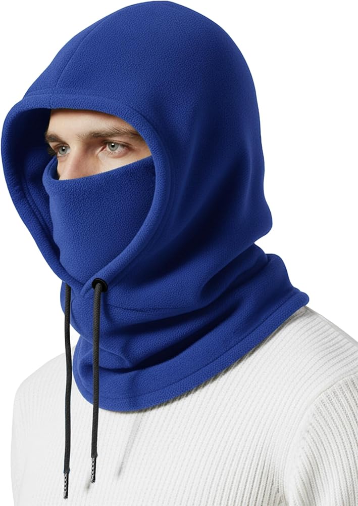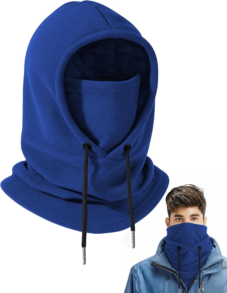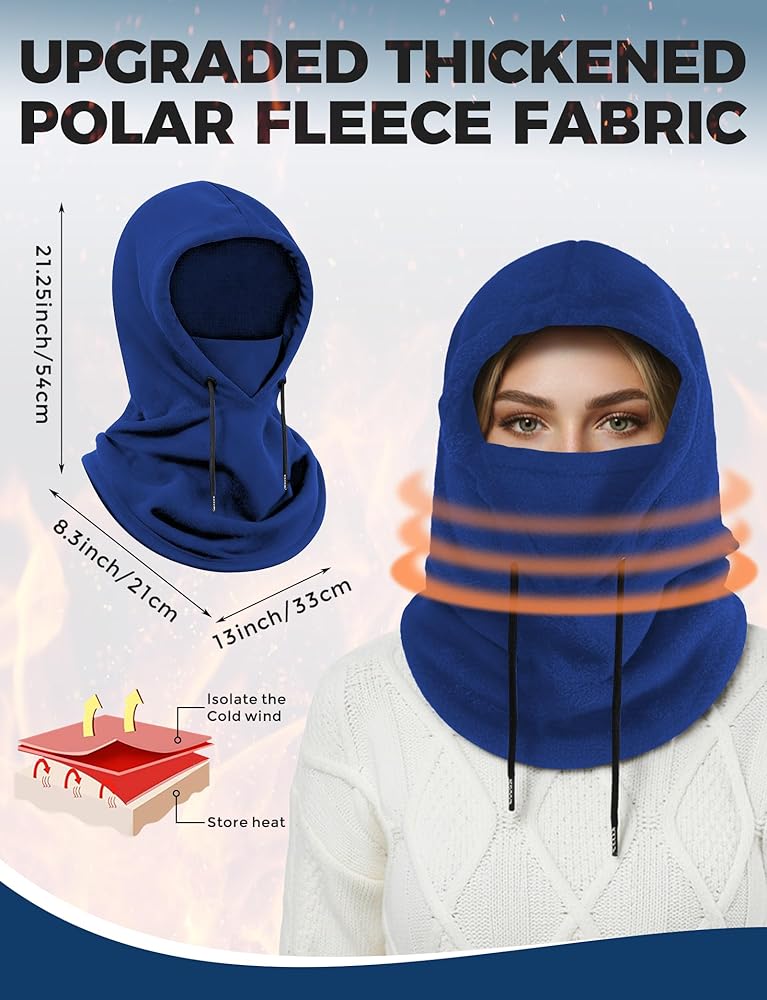 What kind of fabric / material is this made of? fleece composite fabric.Has a more natural and smoother fit than regular balaclavas,it covers you ears. We need these kind of hats in the northeast, when the temps drop below 0 ?. Is the mask long enough to cover the entire neck from the elements? It can cover the neck. is it itchy? No it is not itchy. fleece composite fabric. Soft and warm.. One size fits most. Designed for men and women Balaclava Ski Mask protect you from outdoor activities in cold weather. 2 Size To Choose: Our balaclava has 2 size to choose. One is more suitable for women or children (length: 54cm/21.2 Inch, width:33cm/13 Inch), and one is a large size(length: 54cm/21.2 Inch, width:36.5cm/14.4 Inch), which is more suitable for men, or people with larger head sizes. This balaclava is equipped with 2 drawstring to adjust a half face or full face cover. The appropriate thickness and loose design of the Hood Scarf provide warmth without feeling constrained.Soft & Thick Fleece Material: the hood is well made of soft, thick and really warm fleece composite fabric, odor free and pilling resistance, it's warmer and more comfortable than normal hat. Cozy stretchable fleece, will keep you covered with comfortable, breathable material whenever you put it on, keeping you warm in cold weather conditions! Keep your nose, cheeks & most importantly neck toasty warm.Warm and breathable for men: Our thermal balaclava fleece hood mask made of fleece, which is soft comfortable material provide wind and cold protection, warm and breathable enough to protect your face, neck, ears and nose from cold, wind, dust and snow. The appropriate thickness and loose design of the Hood Scarf provide warmth without feeling constrained. The slightly elastic design allows you to adjust the coverage on the face and neck.