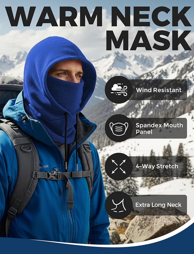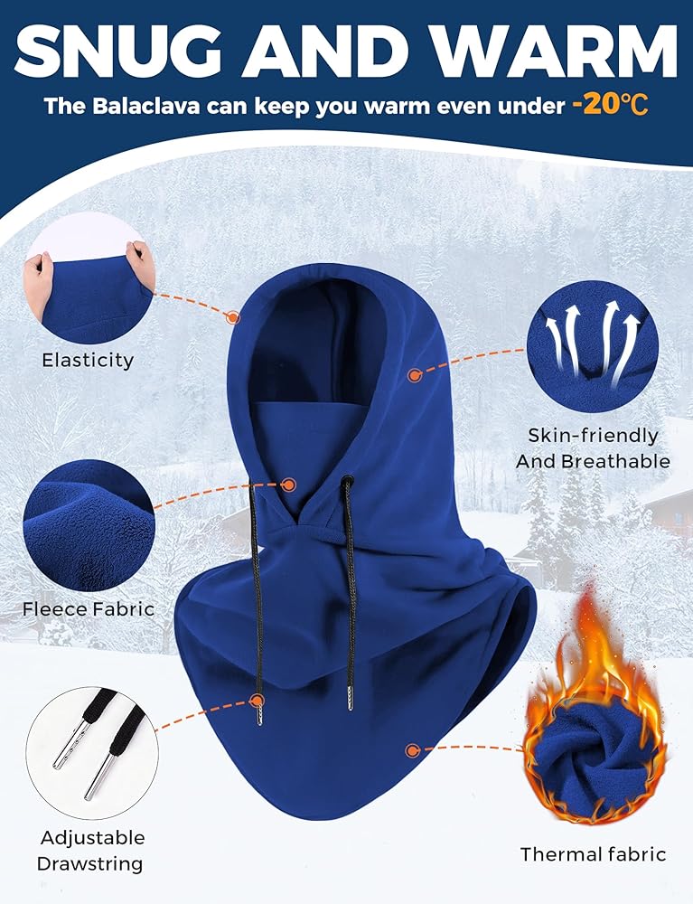 • Soft & Thick Fleece Material: the hood is well made of soft, thick and really warm fleece composite fabric, odor free and pilling resistance, it's warmer and more comfortable than normal hat. Cozy stretchable fleece, will keep you covered with comfortable, breathable material whenever you put it on, keeping you warm in cold weather conditions and it can protect your head, face and neck from cold wind and dust! Keep your nose, cheeks & most importantly neck toasty warm machine washable