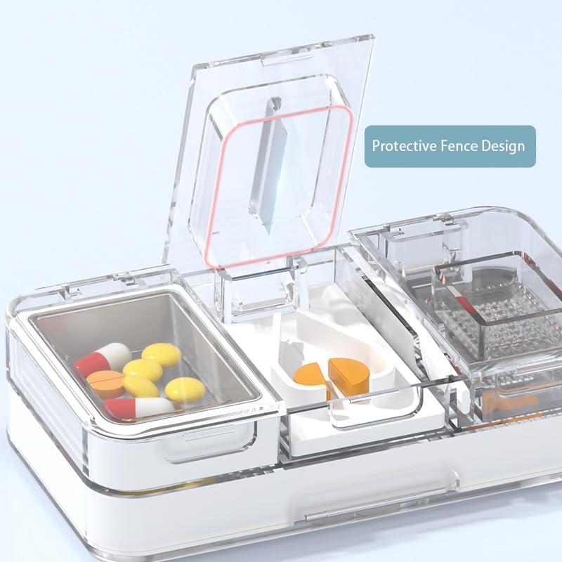 • 3-in-1 Medicine Kit - Our pill cutter offers a versatile 3-in-1 design, featuring functions for cutting, crushing, and storing pills, providing a comprehensive solution for your medication needs.