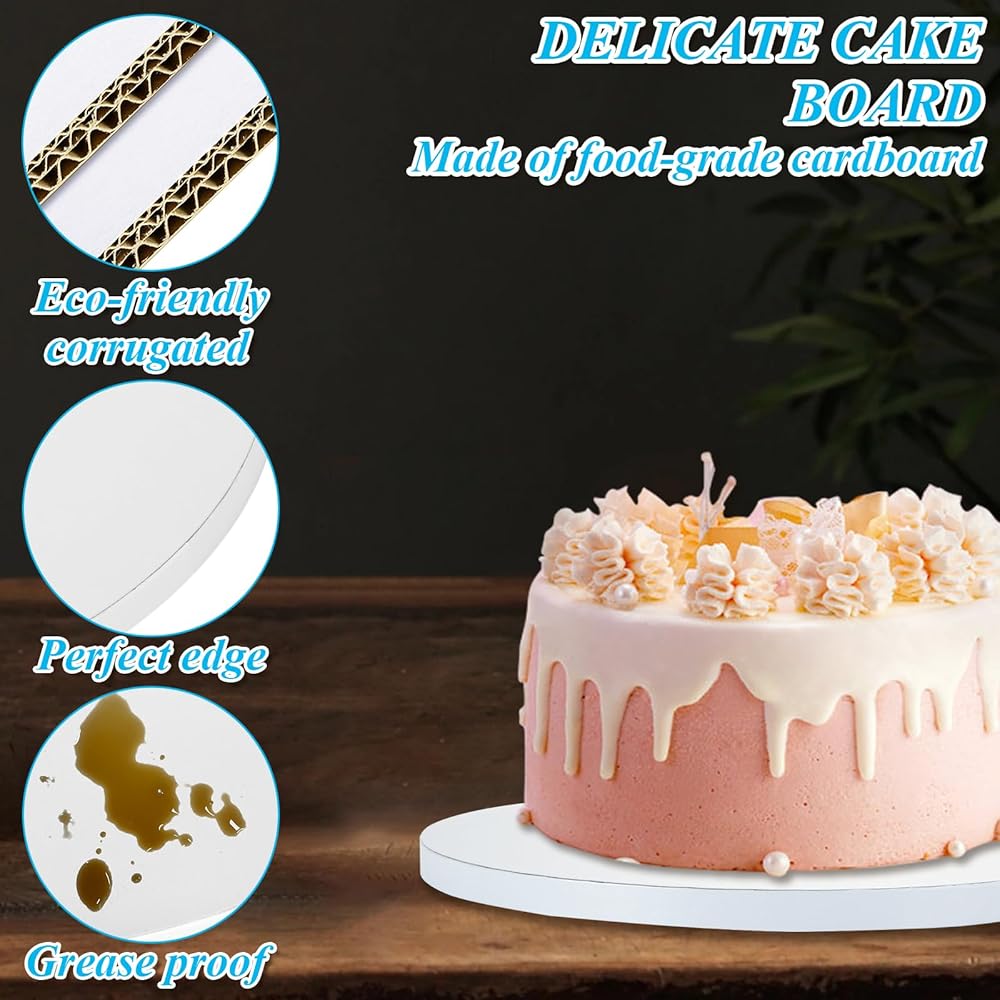 مادة فاخرة: مصنوعة من أربع طبقات من الورق المقوى المموج، طبلة الكيك البيضاء مقاس 12 بوصة قوية وآمنة ومتينة للاستخدام الطويل. إنه خيارك الأمثل للاستخدام في الجزء السفلي من الكعك متعدد الطبقات والكعك الثقيل