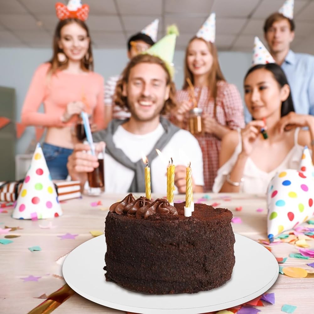 مقاومة للزيوت: ألواح الكعك هذه مقاس 12 بوصة ذات سطح دائري مغطى بحواف ناعمة ستمنع الزيوت من النقع والبقاء في شكلها بعد فترة طويلة. يمكن مسح سطحه اللامع بسهولة، مما يجعل تعديلات الكعكة أسهل