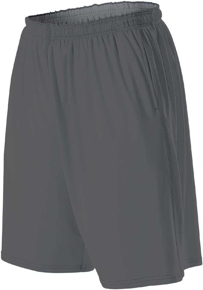 The ultimate workout or training short. Flat knit tech shorts with pockets. Single ply, cover hemmed leg openings with two on-seam self-material deep pockets.