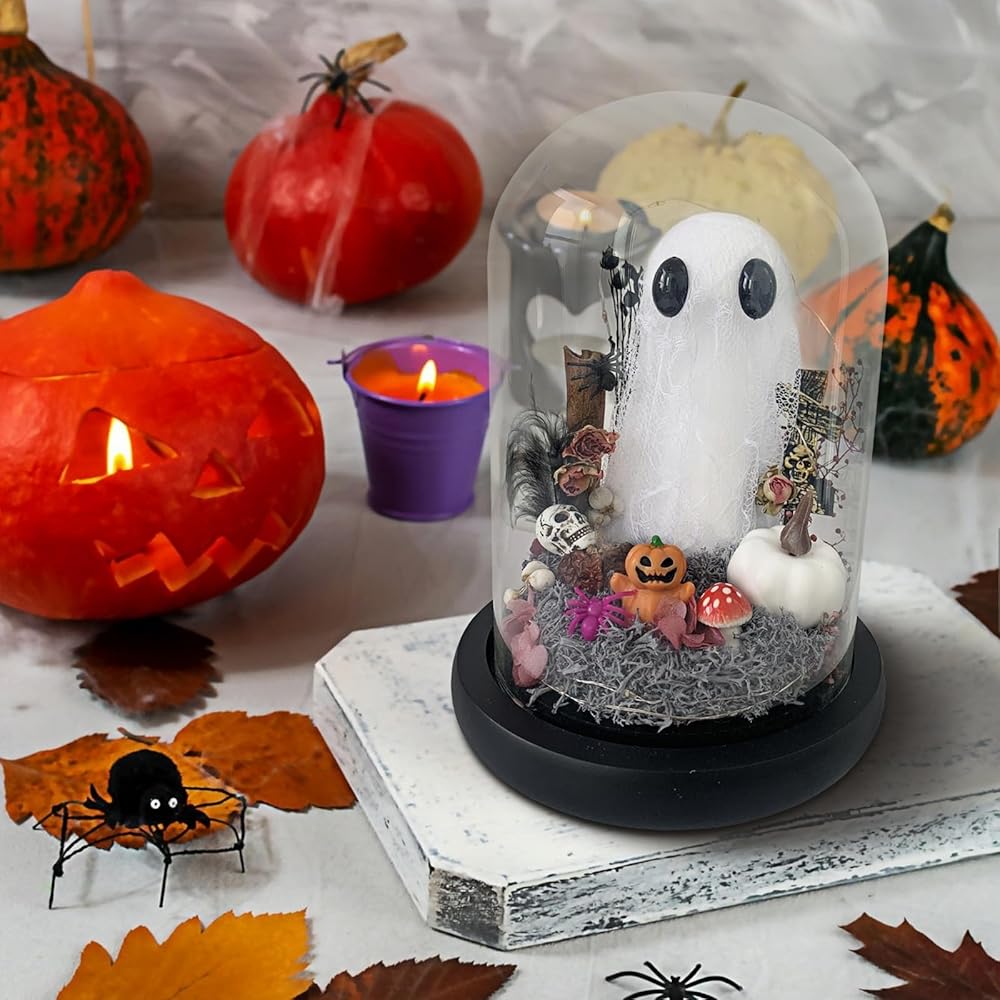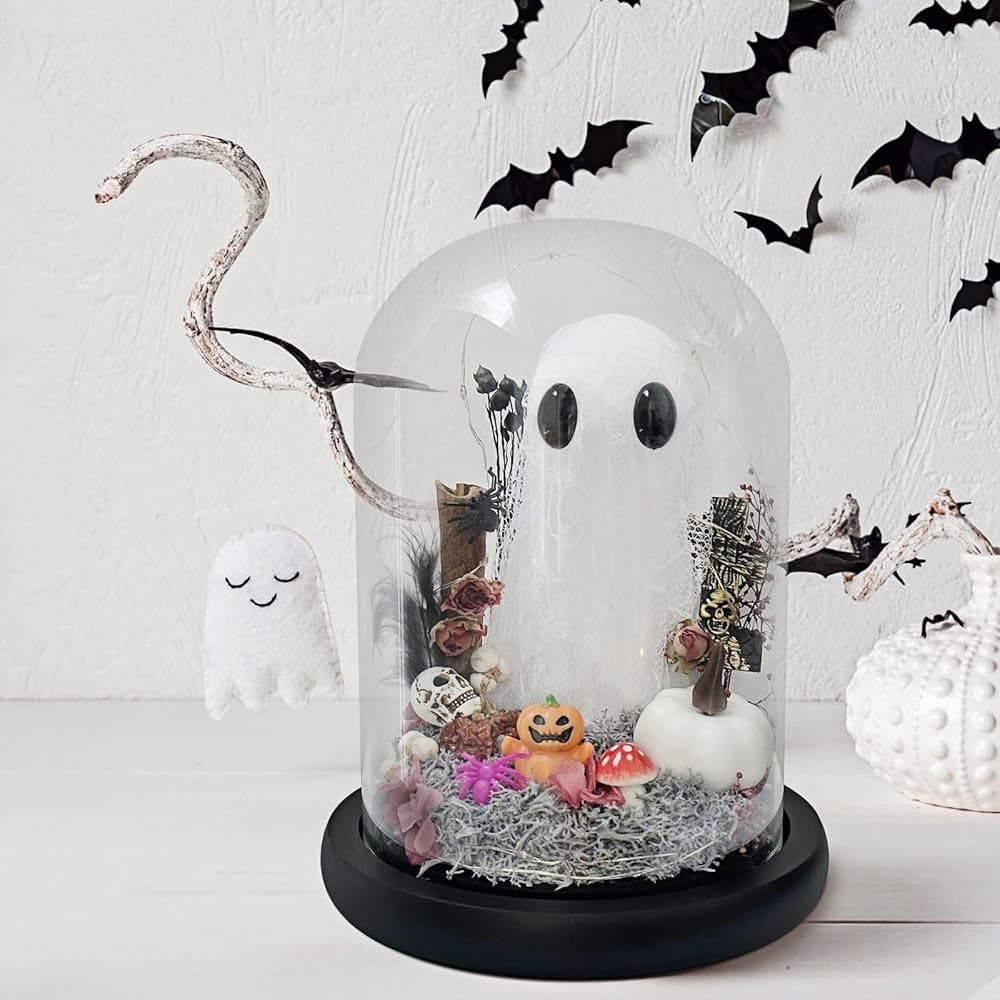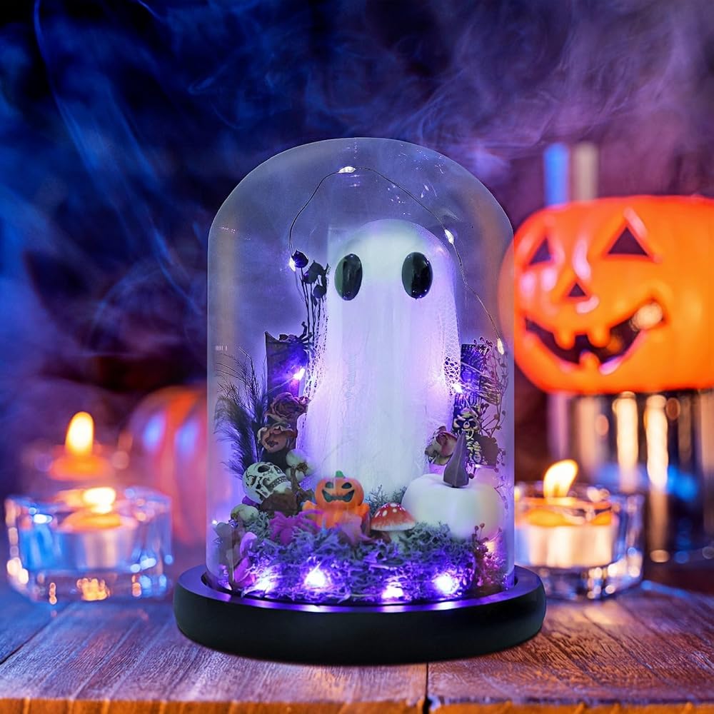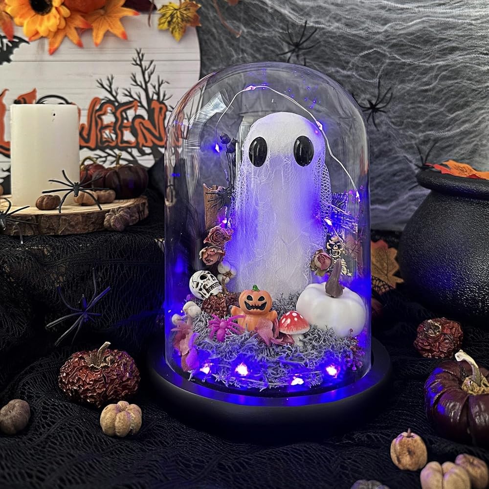 ديكور شبح الهالوين، شبح مضيء في قاء زجاجي، تضيء ديكورات الهالوين في الأماكن المغلقة، شبح لطيف مع ضوء لهدايا الهالوين هدية مخيفة، هدية قوطية، شبح الحيوانات الأليفة، صديق المكتب