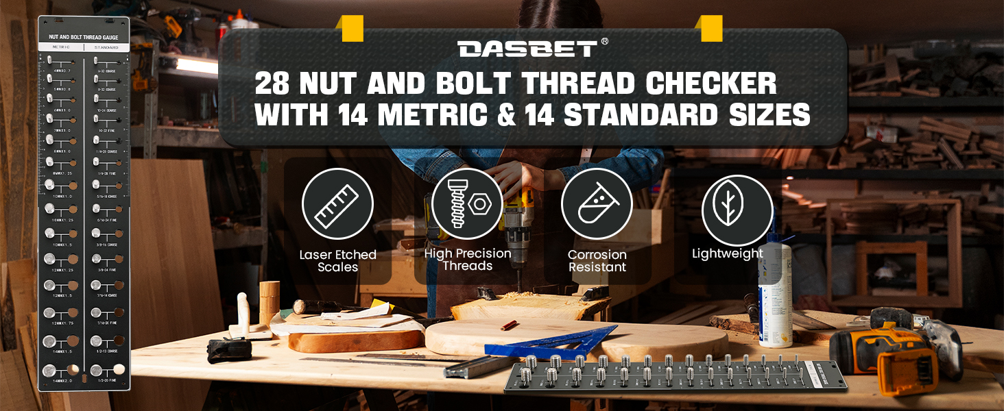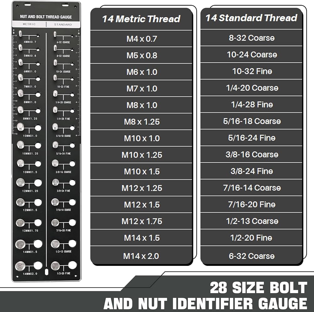 مدقق خيط صامولة ومسمار DASBET 28 مدقق خيط، حجم الخيط مدقق حجم الترباس ومقياس الخيط مع 14 مقياس قياسي و14 متري ومعرف صامولة مع مسطرة بوصة وسنتيمتر، أسود