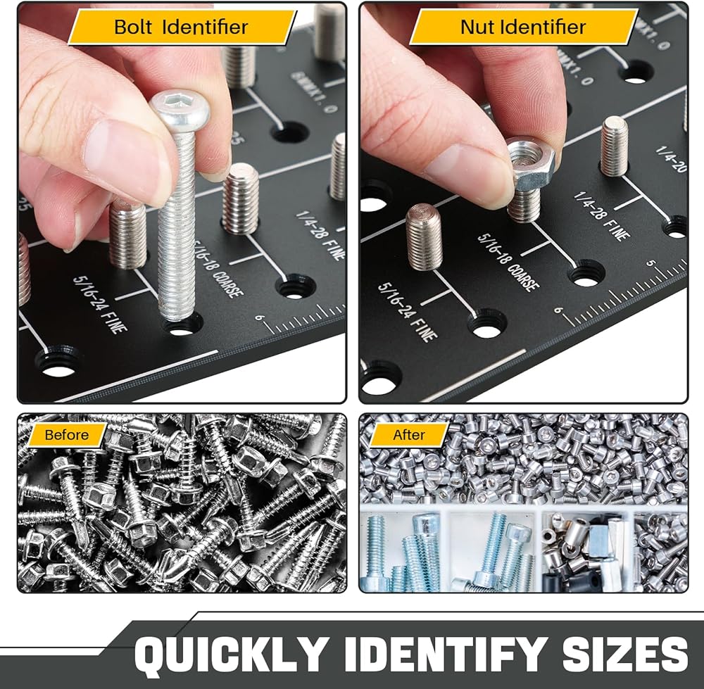 • علامات سهلة القراءة: يتميز حجم المسمار ومقياس الخيط الخاص بنا بمقاييس متينة محفورة بالليزر على الحافة، مما يوفر تحديدًا سريعًا ودقيقًا وسهلاً لأحجام الخيوط المختلفة، وقد تم تصميم لوحة تعريف المسمار بحروف بيضاء على خلفية سوداء. ، سهلة القراءة.