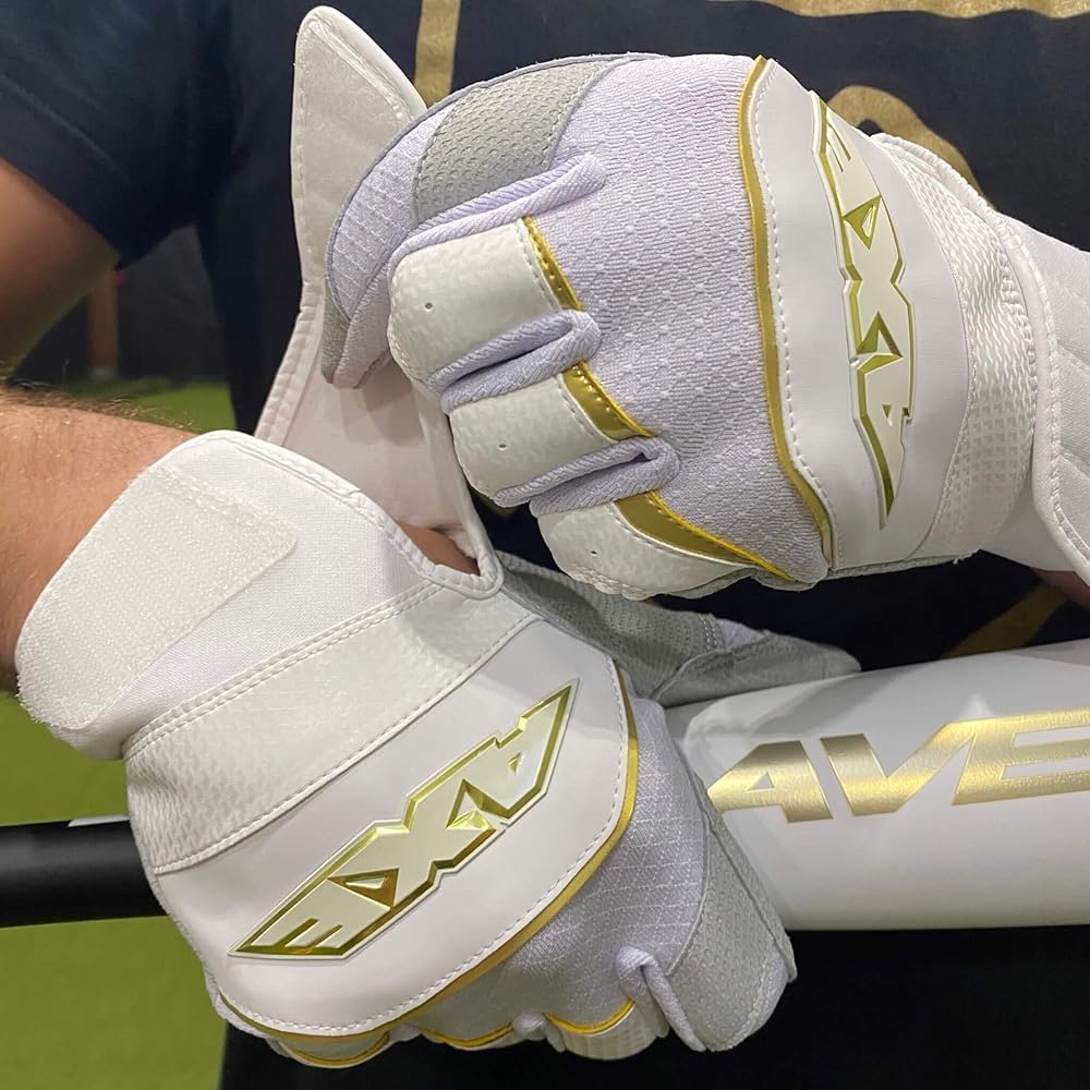 قفازات الضرب من Axe Pro-Fit باللون الأبيض/الذهبي من الجلد Cabretta للكبار مقاس XL
