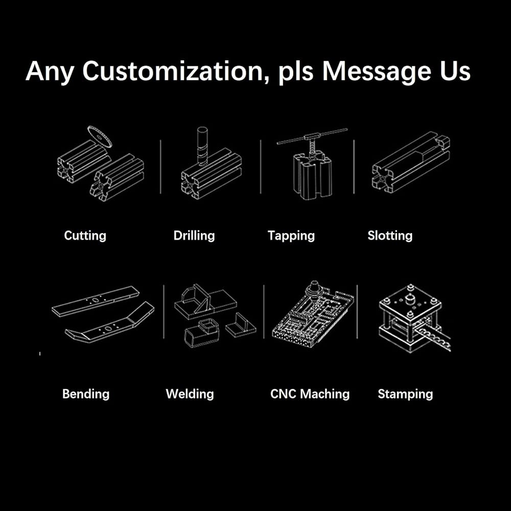 We provide customization, including the aluminum extrusion length,and tapping, making screws in the holes and so on; We have full styles of the aluminum extrutions. If you have special needs, please give us Amazon Message