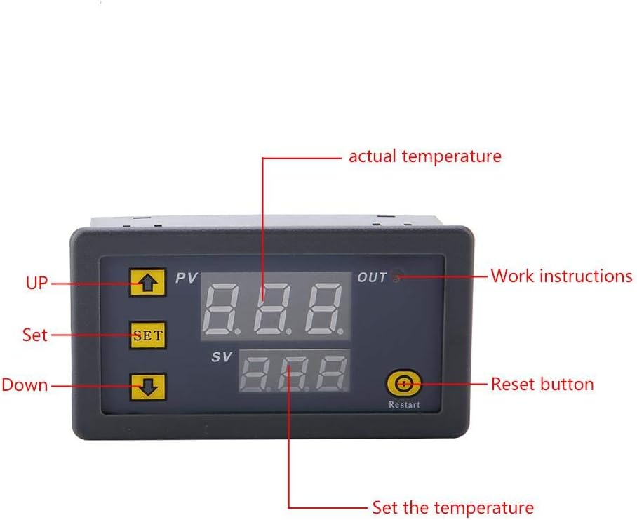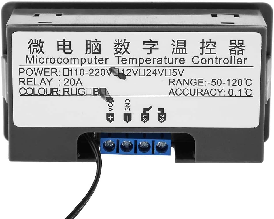ترموستات رقمي، 12 فولت 24 فولت 220 فولت، مفتاح ترموستات للتحكم الرقمي في درجة الحرارة مع مستشعر متر (شاشة عرض حمراء وزرقاء 24 فولت)