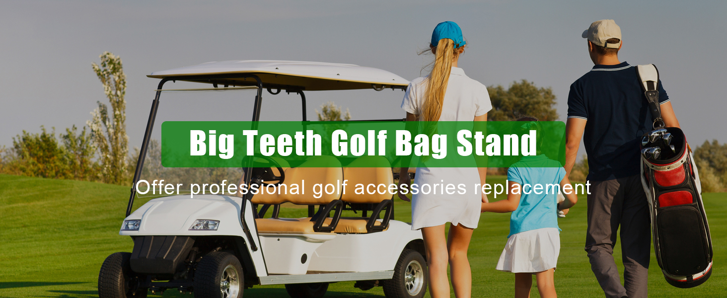 • تجعل حقيبة عربة التسوق الخاصة بك حقيبة حامل على الفور. مع ملحق حامل حقيبة الجولف Big Teeth، يمكنك تحويل حقيبة عربة التسوق الخاصة بك التي لا يمكنها الوقوف إلى حقيبة حامل أثناء تواجدك في نطاق القيادة. ليس هناك ما هو أكثر إحراجًا من سقوط حقيبة الجولف الخاصة بك والجميع ينظر إليها. لا مزيد من الدعم بالكراسي أو خدعة عصا المحاذاة القديمة