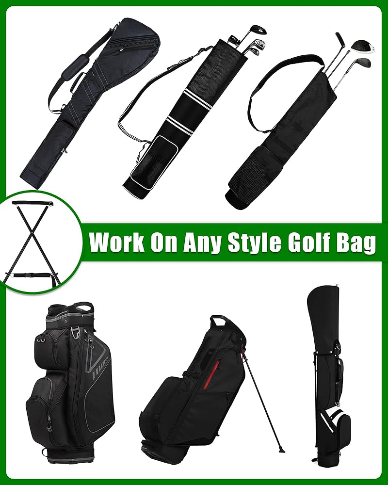 • تعمل على أي حقيبة أنيقة. مثالية لحقيبة عربة التسوق، وتعمل أيضًا على حقائب الجولف الأخرى وحقائب حمل الجولف وحقائب الجولف بدون حامل مرفق. يعد ملحق حامل حقيبة الجولف الخاص بنا عنصرًا مناسبًا إذا كنت ترغب في حمل حقيبة عربة التسوق ولكنك ترغب أيضًا في الذهاب إلى النطاق. كما أنها هدية صغيرة لطيفة للاعب الجولف المفضل لديك أيضًا