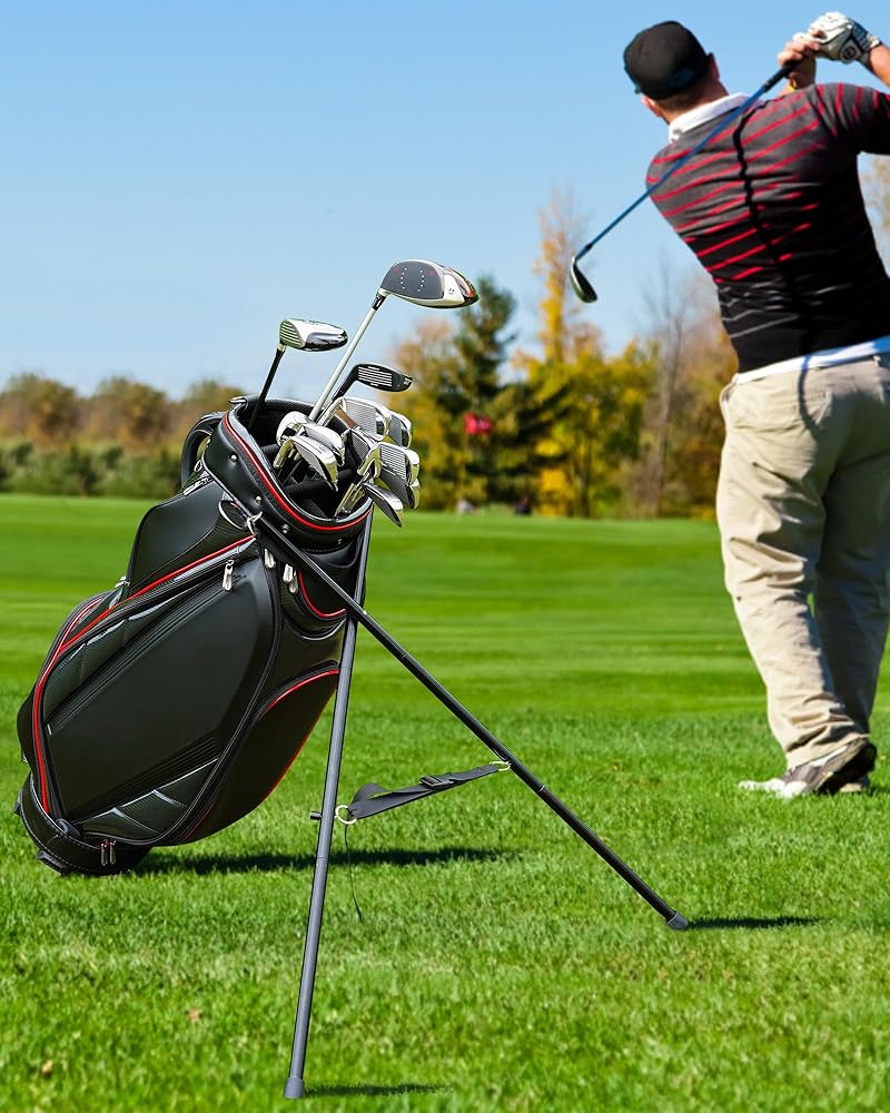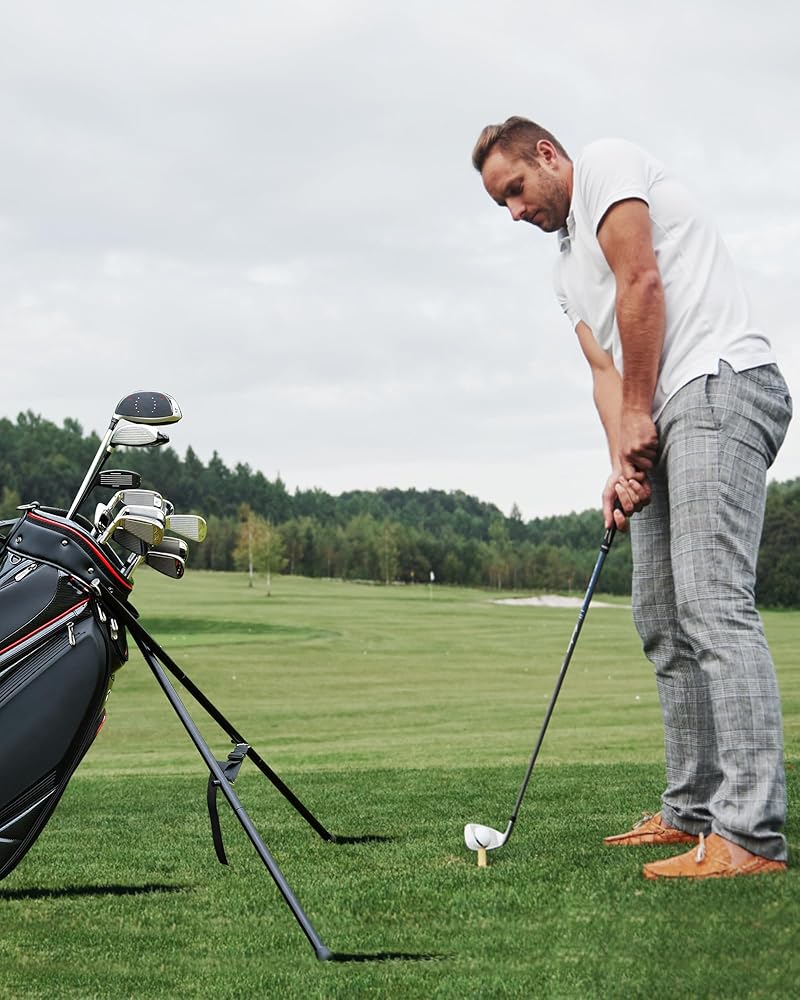 • يمكن الوصول إلى جميع الأندية الخاصة بك بسهولة. الآن لا داعي للقلق بشأن تعرض ناديك للتلف أو خوفك من اصطدام حقيبة الجولف بالأرض خلفك. يقوم حامل حقيبة الجولف أيضًا بوضع الحقيبة بحيث يسهل الوصول إلى النوادي الموجودة في النطاق. من المؤكد أنه يجعل الأمر أسهل بكثير على ظهرك دون الحاجة إلى الانحناء في كل مرة لالتقاط حقيبتك أو اختيار النادي