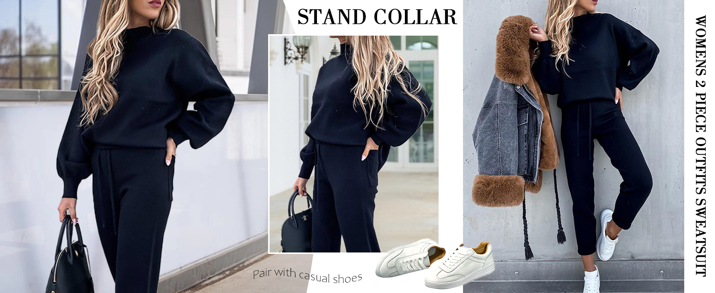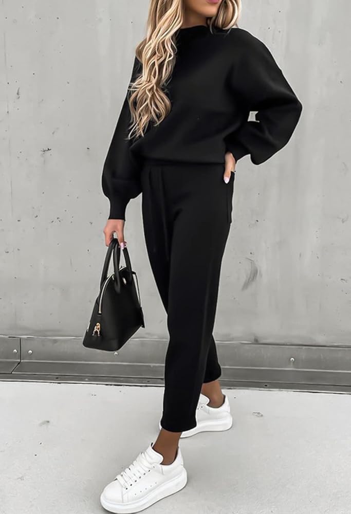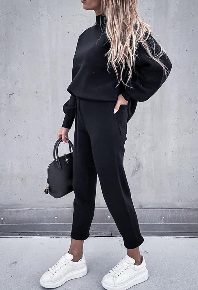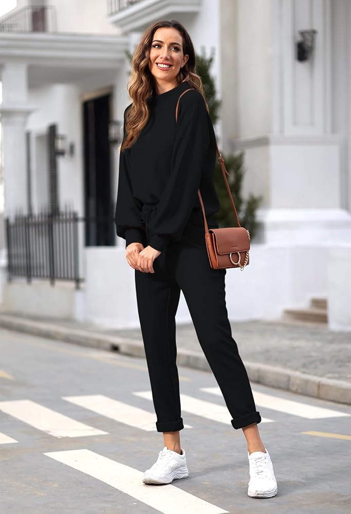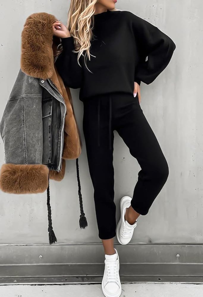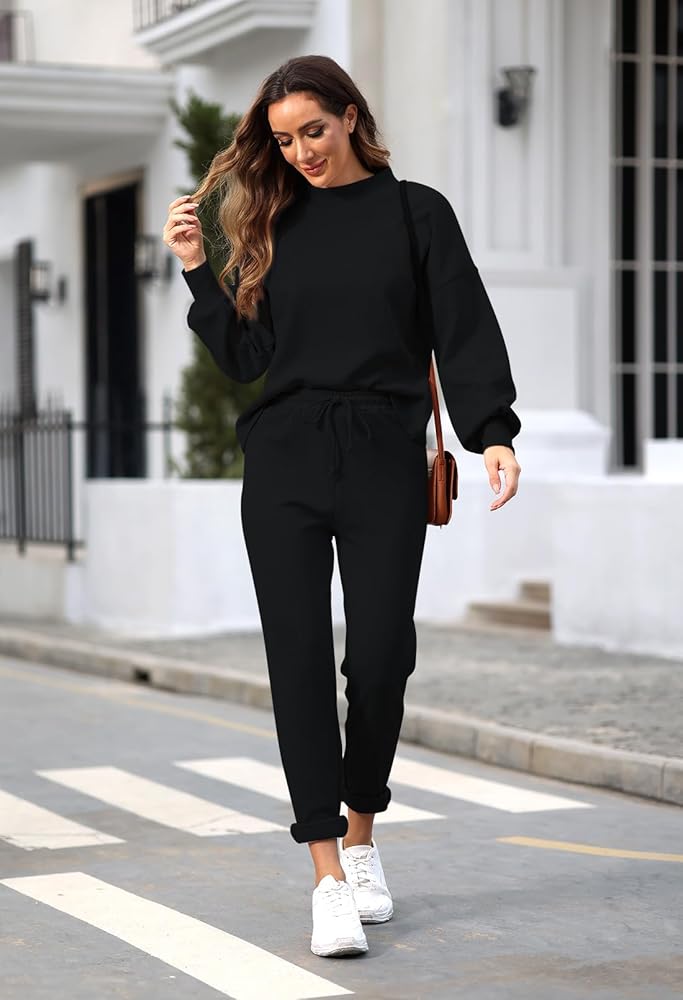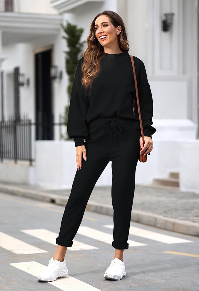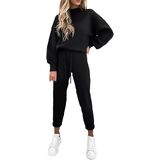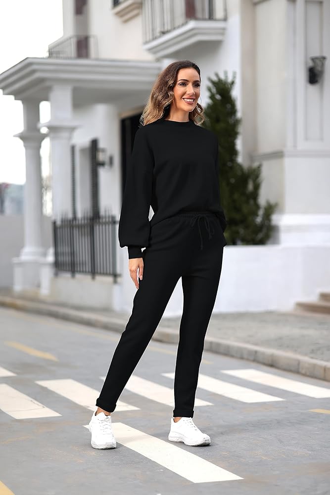 - بدلة ركض كاجوال مكونة من قطعتين للسيدات، سويت شيرت بلوفر بأكمام طويلة وبنطلون ركض.