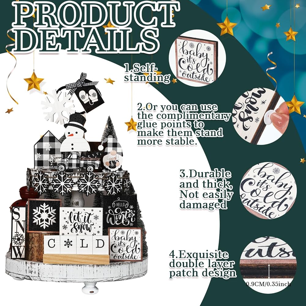 We supply stands, glues, and hemp ropes with our Gingerbread Man Christmas Tiered Tray decoration set. You can string the decorations and hang them in your home to deepen the festive atmosphere.
