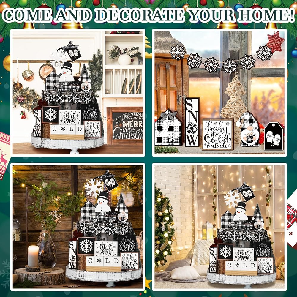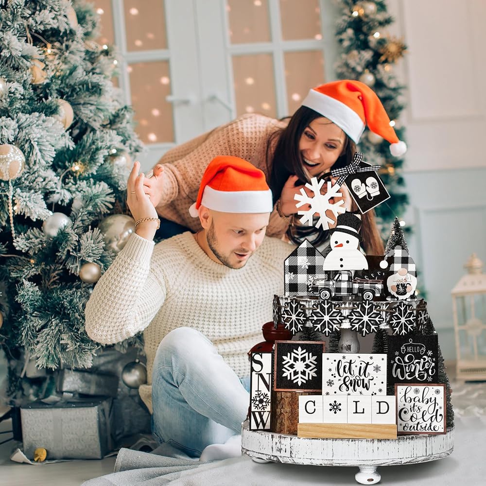 Beautifully crafted, our Gingerbread Man Christmas tiered tray decoration set includes elements of heart warming festive nostalgia. Tiny houses, snow capped coffee mugs, and charming gingerbread men encapsulate the beauty and warmth of the holiday season.