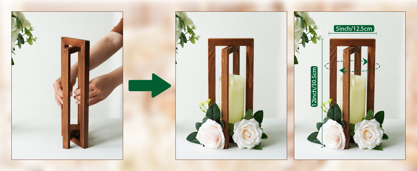 تصميم قابل للطي لا يتطلب تجميعًا: زخارف طاولات الزفاف المركزية لدينا مثبتة مسبقًا، لذلك لا تحتاج إلى تركيبها بنفسك. تم اختبار الهيكل بشكل متكرر، يمكنك فتحه بسهولة ومرونة ووضع ديكور الزفاف الريفي بثقة في أي مكان تريده، بشكل مريح وموفر للمساحة. يحتفظ السطح بالملمس الطبيعي للخشب، مما يضيف إحساسًا ريفيًا إلى الكل وجاذبية ساحرة عتيقة لمناسبتك.