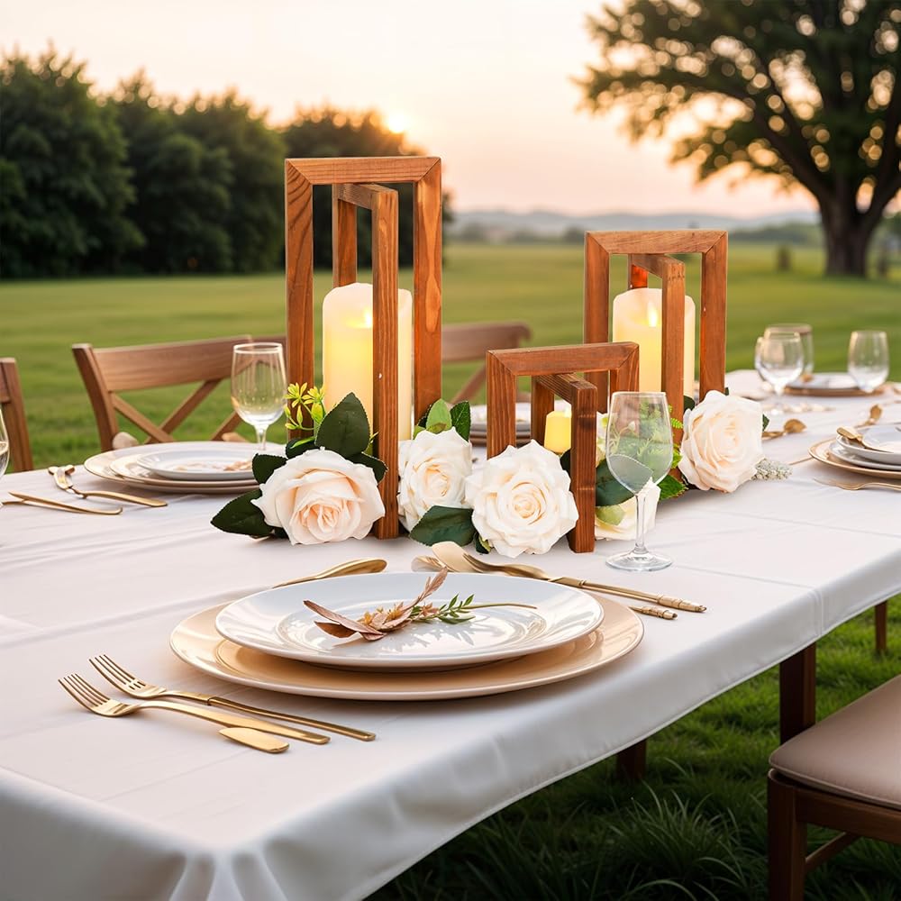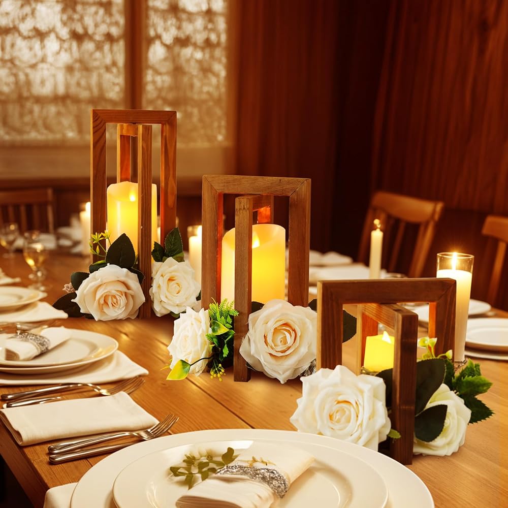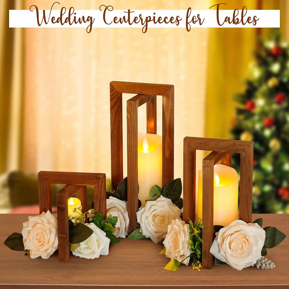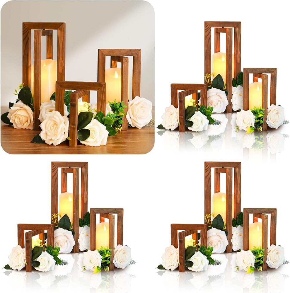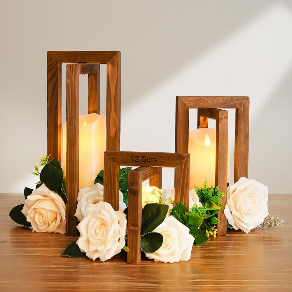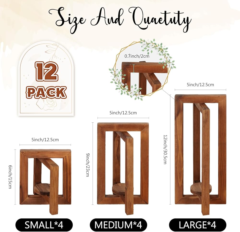 12 قطعة من قطع مركزية للزفاف من OurWarm للطاولات، قطع مركزية خشبية قابلة للطي للطاولات المركزية لحفلات الزفاف، فوانيس ريفية بنية للقطع المركزية لتزيين حفلات الزفاف