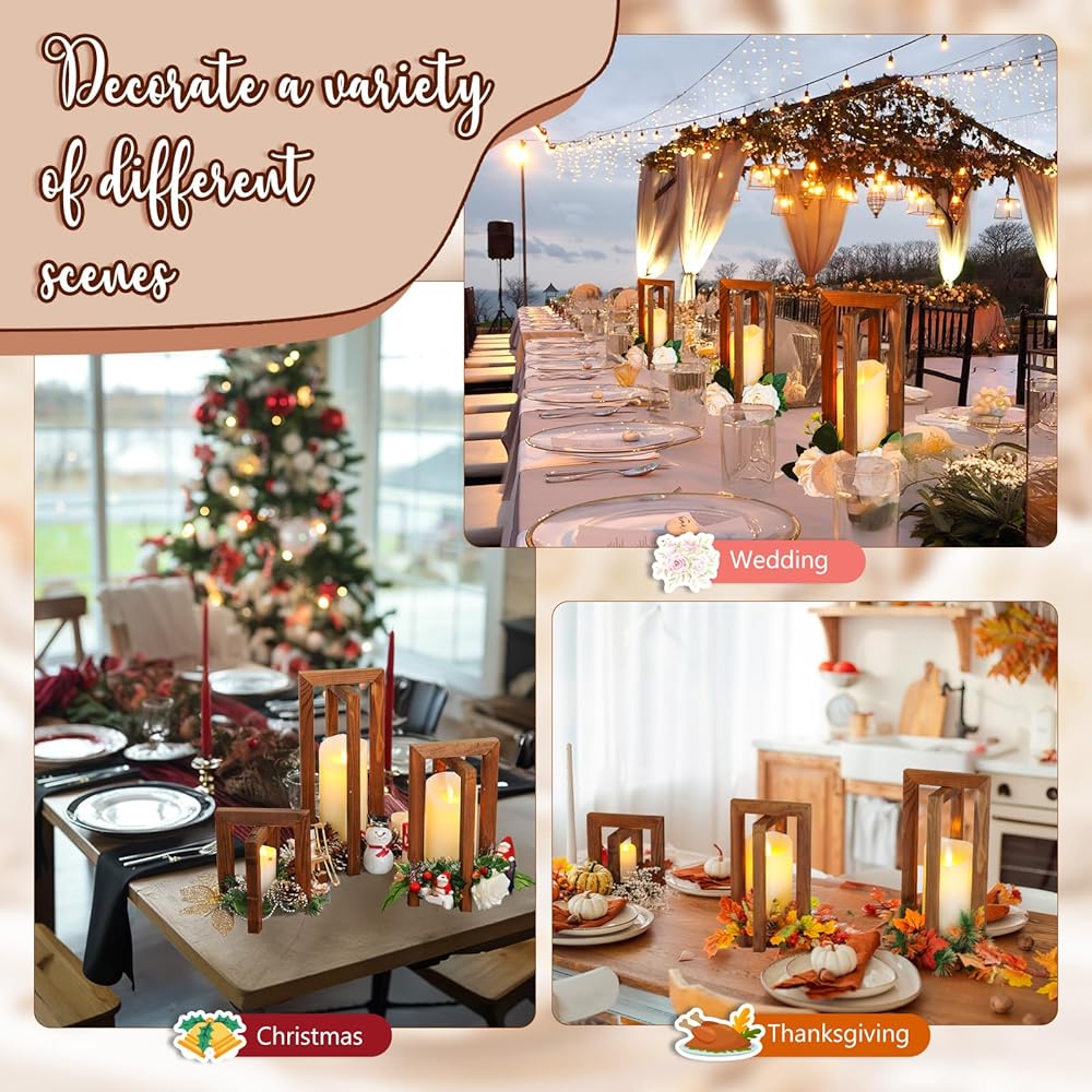 كمية كافية وأبعاد مختلفة: سوف تحصل على 12 قطعة من الفوانيس الخشبية لقطع الزفاف المركزية في 3 أبعاد مختلفة، على التوالي حوالي 5 × 6 بوصات، 5 × 9 بوصات، و5 × 12 بوصة، الكمية 4 لكل حجم، وفيرة بما يكفي لتلبية احتياجاتك احتياجات الديكور لأي مناسبة، مما يجعلها مثالية للاستخدام الشخصي وتزيين التجمعات الكبيرة، مما يتيح لك إعجاب كل ضيف، وجعل كل ركن من أركان منزلك يبدو أنيقًا ومتطورًا.
