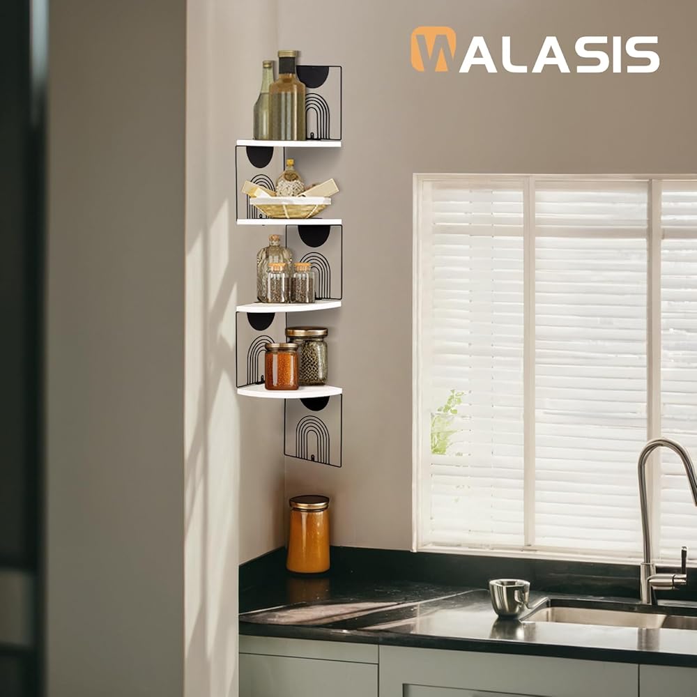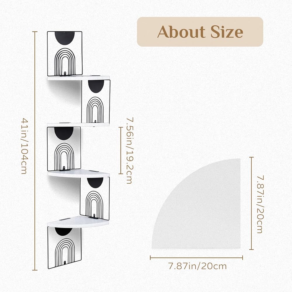 4 طبقات لزيادة استخدام المساحة إلى الحد الأقصى: تبلغ سعة أرفف التخزين الجدارية لكل طبقة 8.8 رطل، بإجمالي 35 رطل. تم قطع الأرفف لتناسب زاوية حائط بزاوية 90 درجة وبارتفاع 7.87 بوصة بين كل رف، إنها الطريقة المثالية للاستفادة من مساحة الزاوية المهدرة وتوسيع مساحتك الصغيرة.