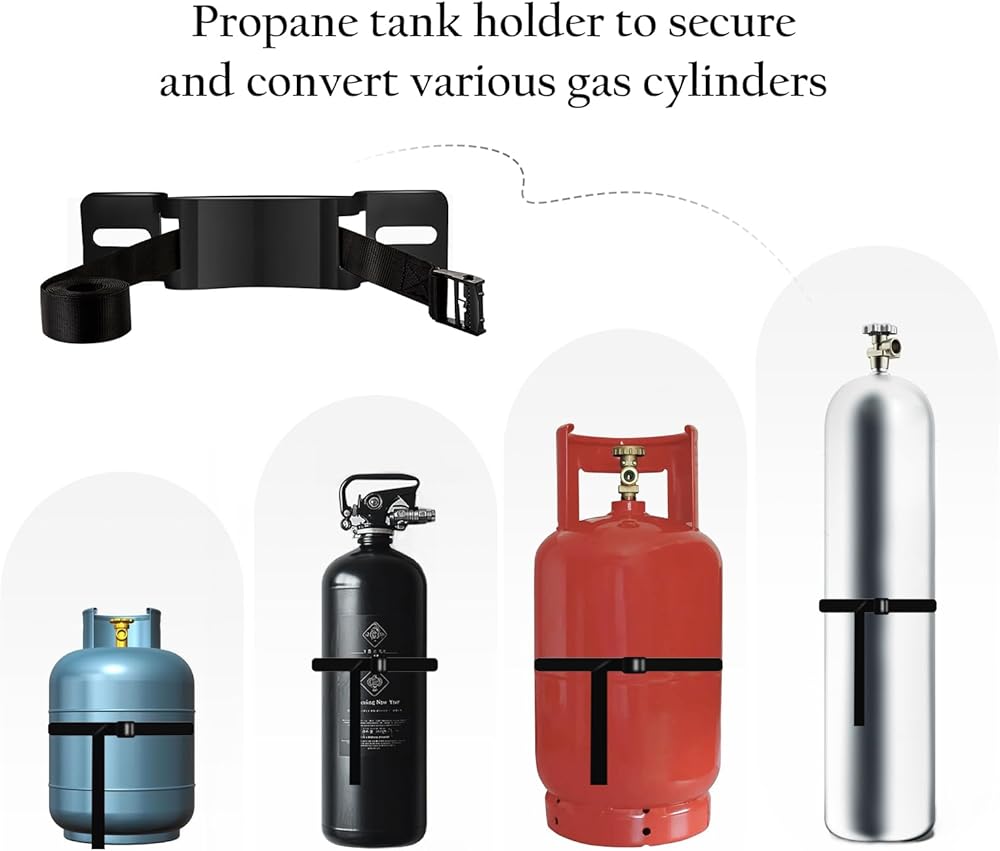 higher quality:Propane Tank Holders are made of high-quality steel and are durable, comes with a 60-inch long nylon strap and adjustable length metal buckle ,providing strong and durable support for gas cylinders