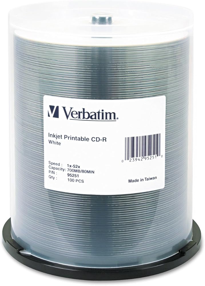 100 قرص CD-R عالي الجودة قابل للطباعة بنفث الحبر مع عمر أرشيفي يصل إلى مائة عام ومعتمد من صانعي القطع الأصلية