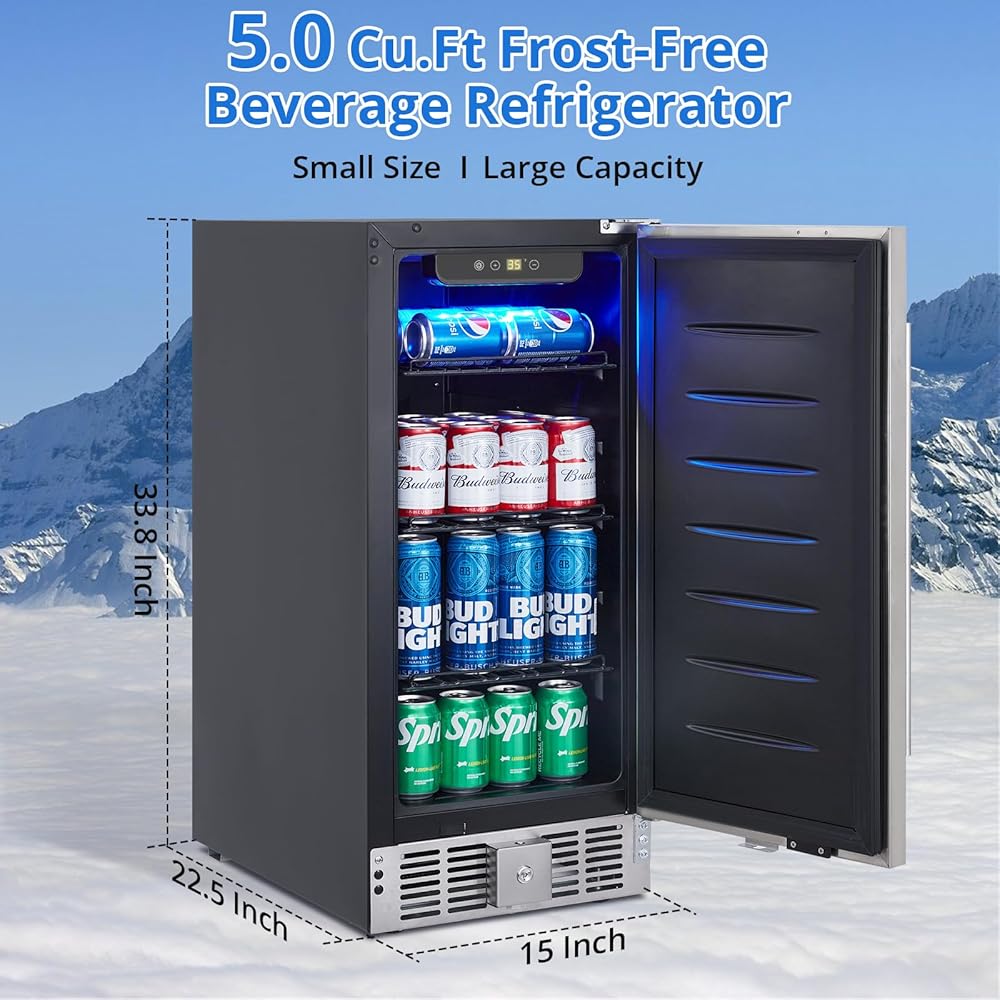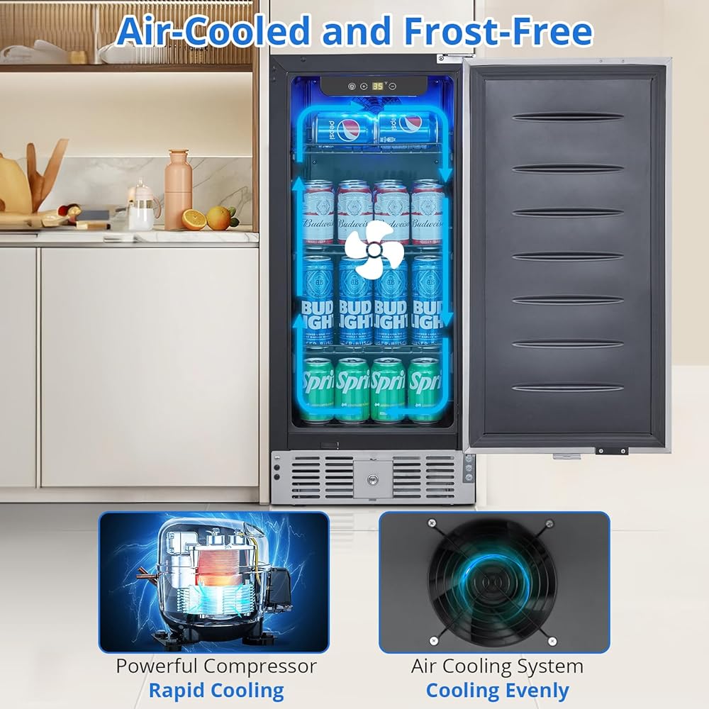 【Advanced Storage Capacity】CuisinAid 15-inch beverage refrigerator offers a spacious interior that can accommodate up to 110 cans of various sizes, making it ideal for wine lovers, craft beer enthusiasts, and soda fans alike. It even accommodates larger bottles without sacrificing storage space.