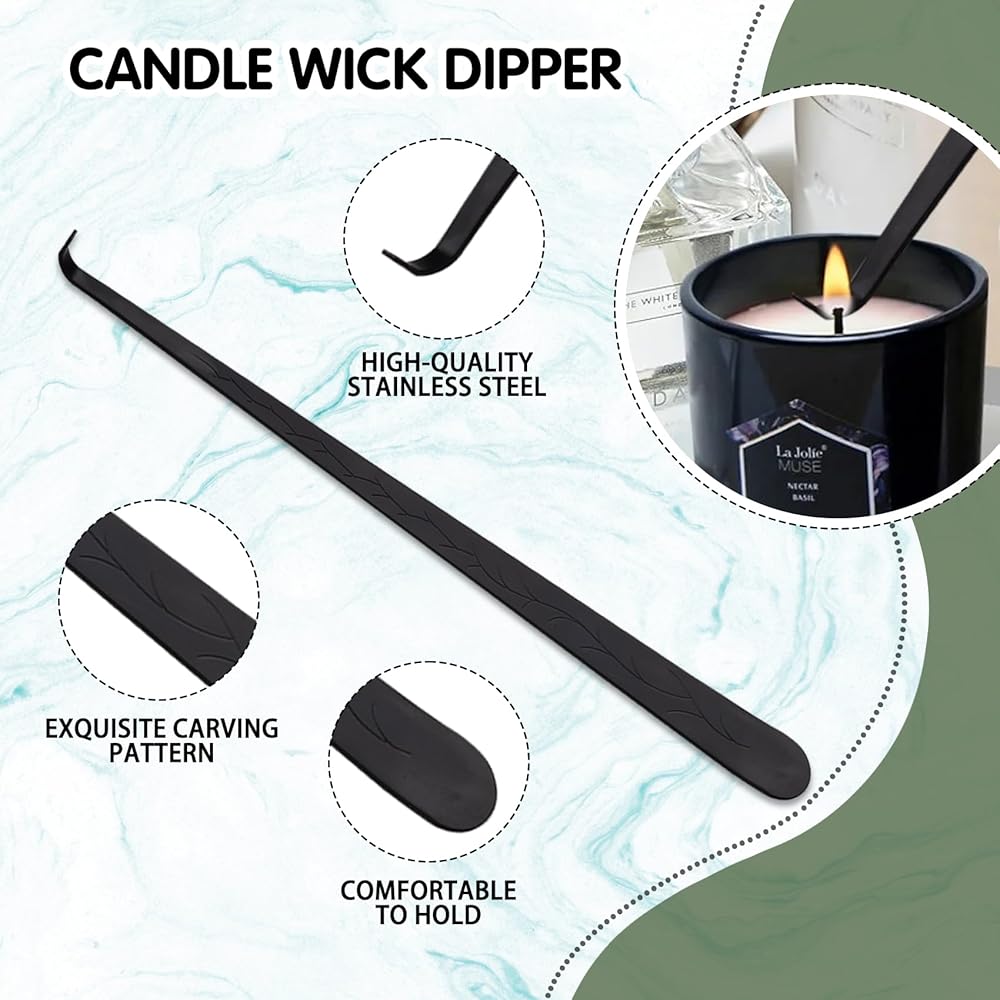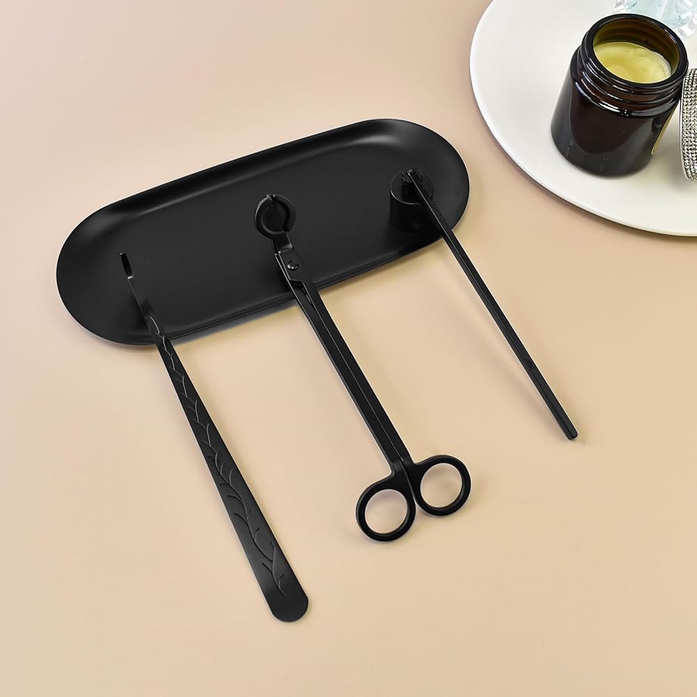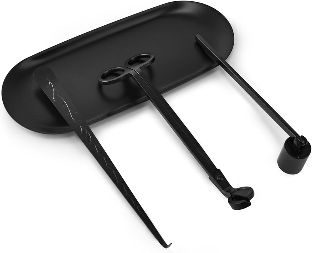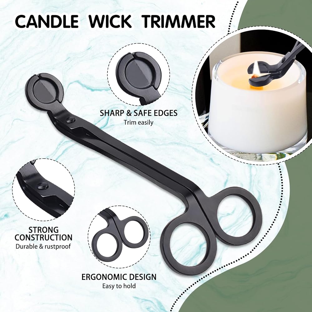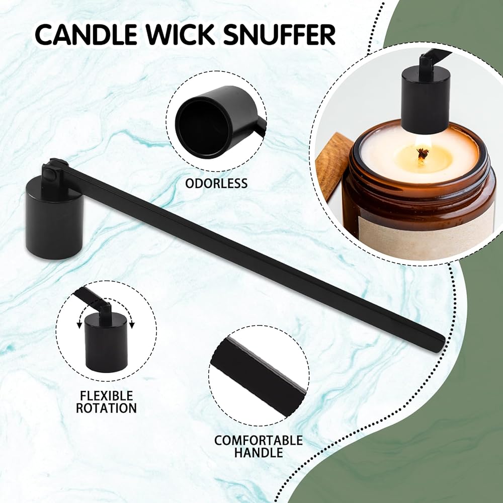 【Candle Accessory Set】The set includes a wick dipper, wick trimmer, candle snuffer and tray. The set contains everything you need to maintain a safe burn and extend the life of your favorite candles, ensuring clean trimming and a cleaner, safer candle burn.