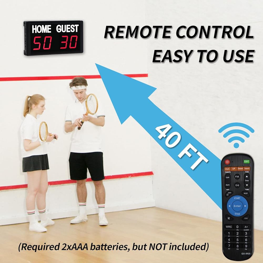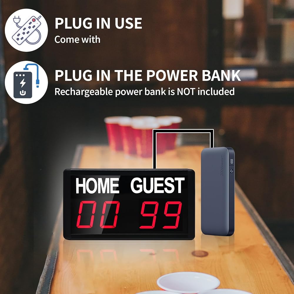 لوحة النتائج الإلكترونية المحمولة: إطار رائع من سبائك الألومنيوم بتصميم حائز على براءة اختراع، مما يجعله خفيفًا وموثوقًا ومتينًا. يتم التحكم فيه عن طريق جهاز التحكم عن بعد بالأشعة تحت الحمراء مع مسافة تحكم تبلغ 40 قدمًا (تحتاج إلى بطارية AAA، غير متضمنة) من السهل تشغيل النتائج وضبط السطوع وإعطاء صوت صفير.
