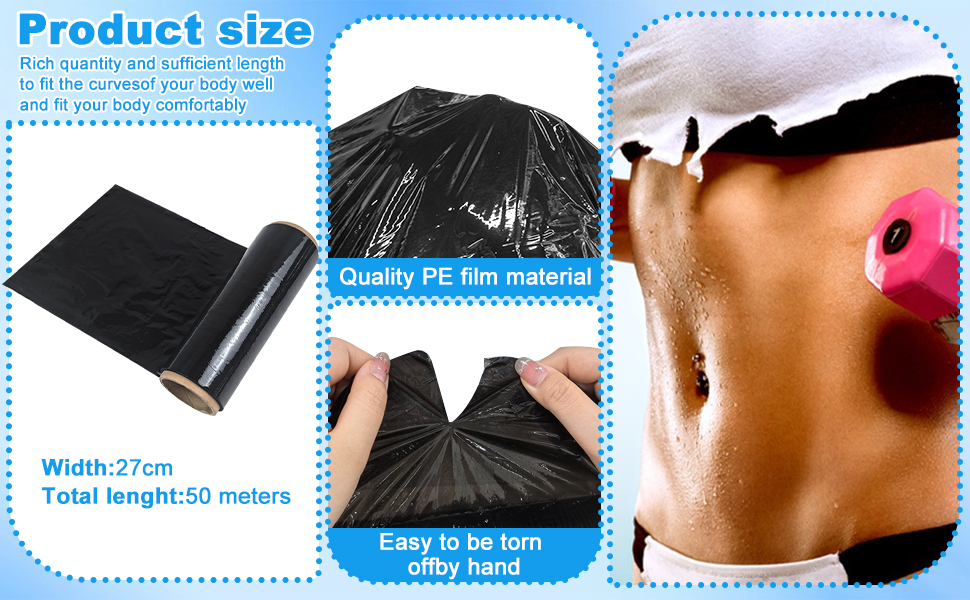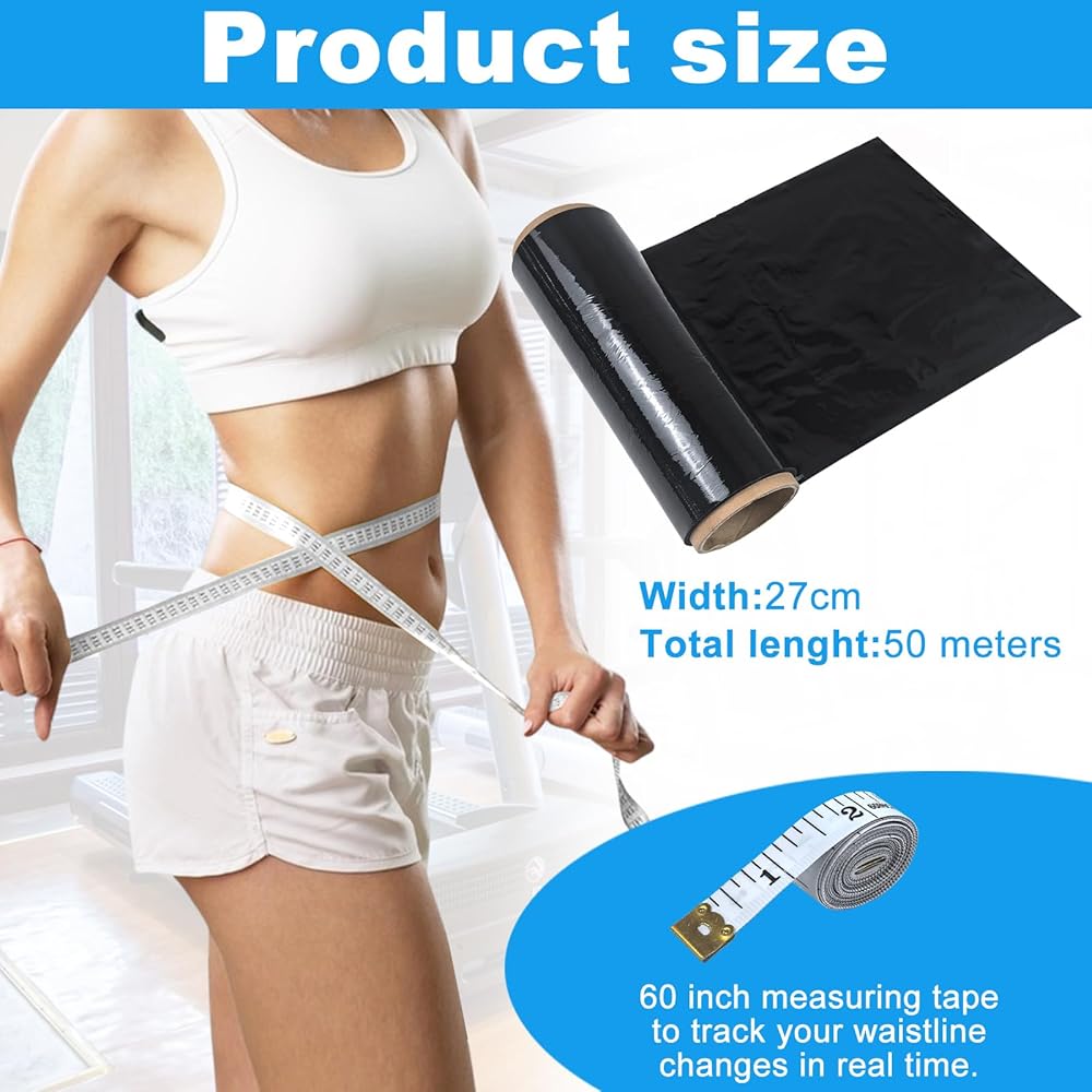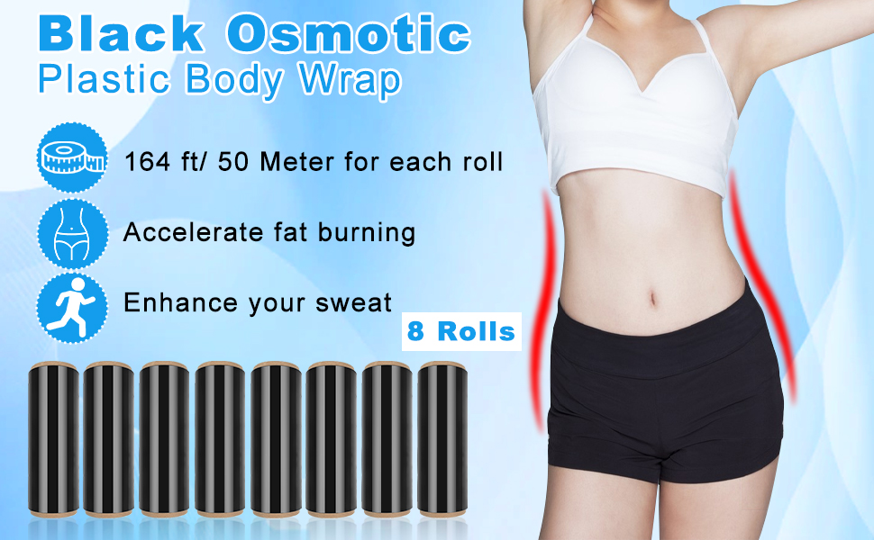 8 لفات بطول 50 مترًا من البلاستيك الأسموزي الأسود، لفافة الجسم للتمرين والتعرق، لفافة الجسم الحرارية، لفافة الطاقة لتأثير الجسم