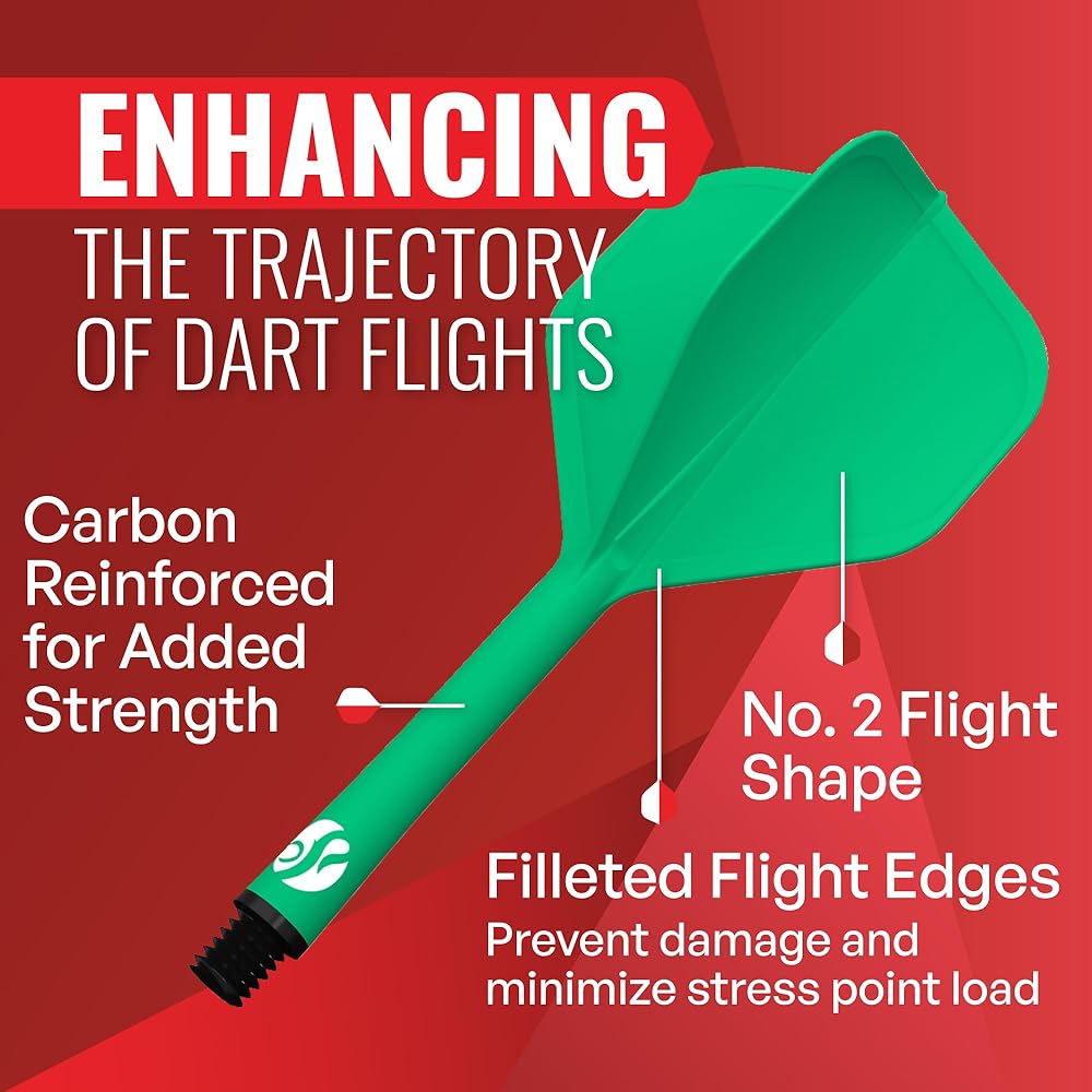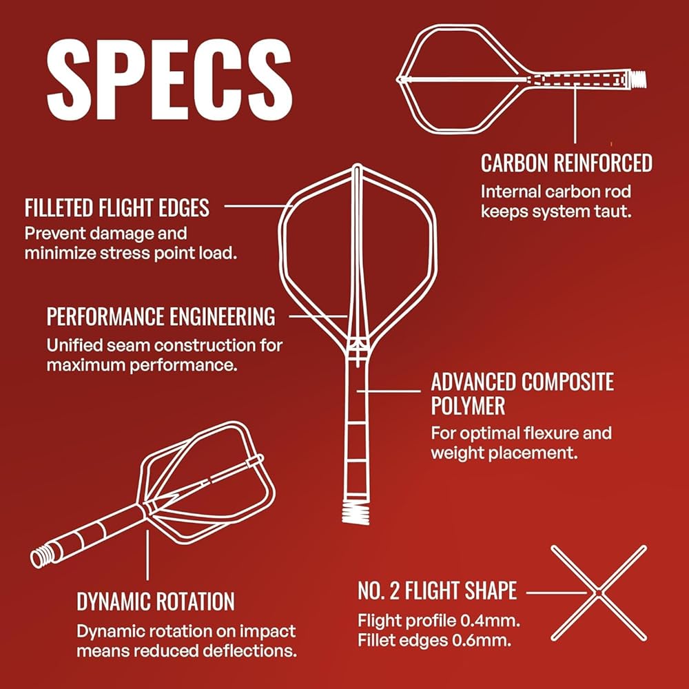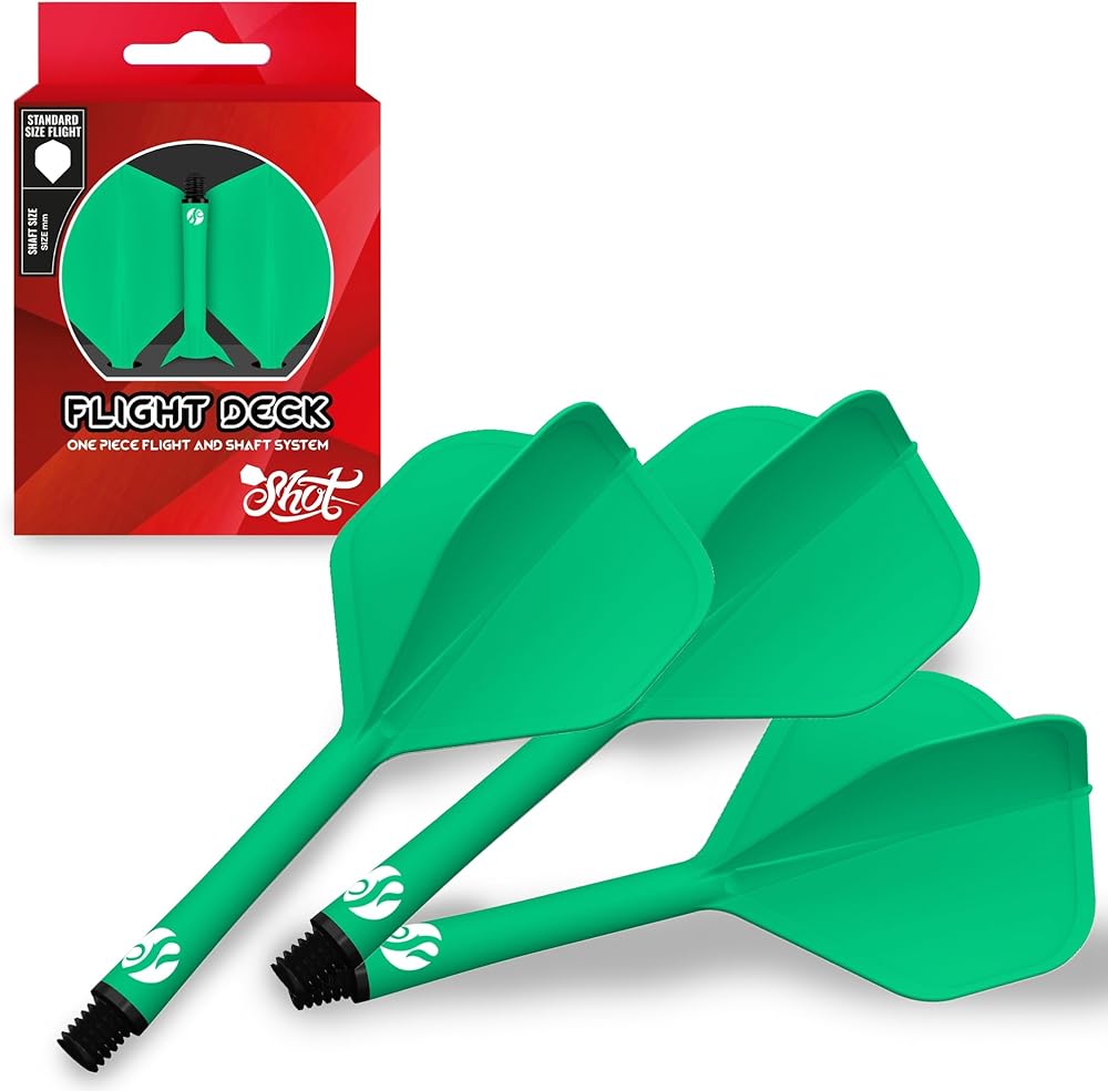 Take the controls with an integrated dart flight and shaft system - with a difference. Constructed from an advanced composite polymer, Flight Deck is designed for optimal flexure and weight placement along the shaft and flight – for tighter dart groupings on the dartboard and better overall dart balance. For added strength, Shot's design team added a Carbon rod in its centre to keep it taut and longer lasting. Flight Deck's intelligent, dynamic rotation on impact means reduced deflections, while fileted edges prevent collision damage and minimise stress point load. Robin Hoods are kept at bay, with no flight and shaft separation during play.