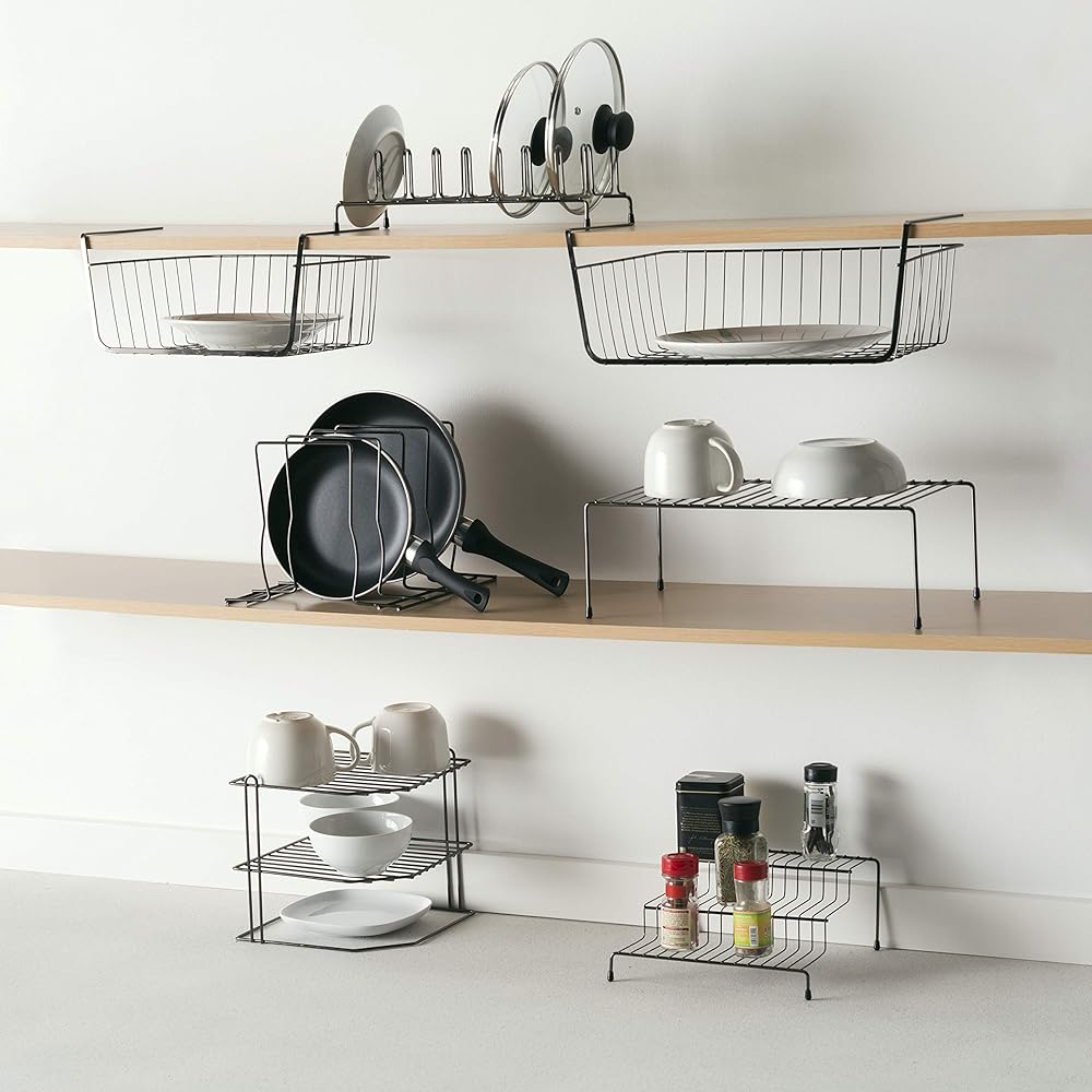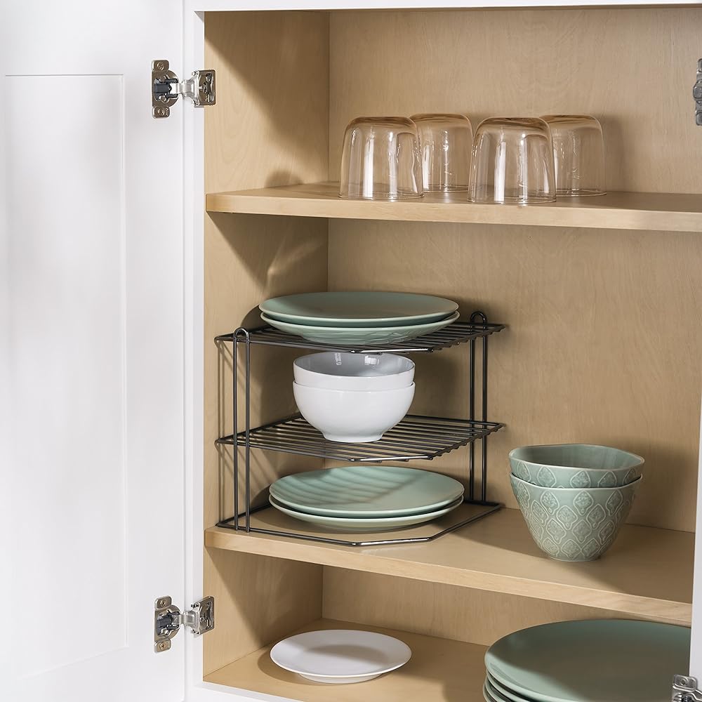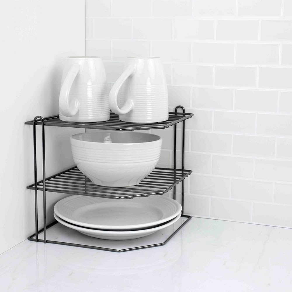هوم بيسيكس منظم أرفف زاوية المطبخ من 3 طبقات أسود أونيكس | في الخزانة أو سطح الطاولة أو مخزن المؤن للأطباق والأوعية والأكواب والمقالي والمزيد | تصميم الزاوية