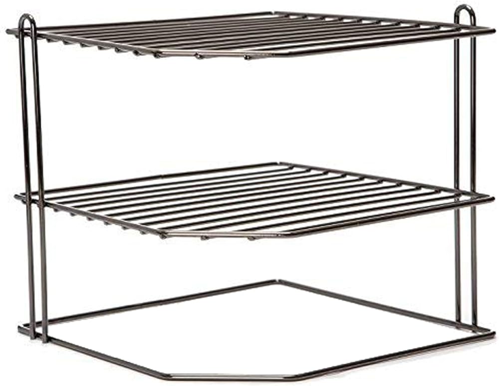 Maximize your kitchen storage with the 3-Tier Kitchen Corner Shelf Organizer in Black Onyx. This versatile organizer features three levels of storage, perfect for organizing and storing plates, bowls, cups, pans, and other kitchen essentials. Designed for use in cabinets, on countertops, or in the pantry, it offers a flexible storage solution that fits any kitchen space. The two ventilated wire mesh shelves allow for air circulation, keeping your items dry and easily accessible. Constructed from high-quality materials with a sleek black onyx finish, this organizer is both durable and stylish, adding a modern touch to your kitchen decor. The space-saving corner design ensures you make the most of your kitchen storage, making it an ideal solution for small or crowded areas. Enhance your kitchen organization with this practical and elegant 3-tier corner shelf.