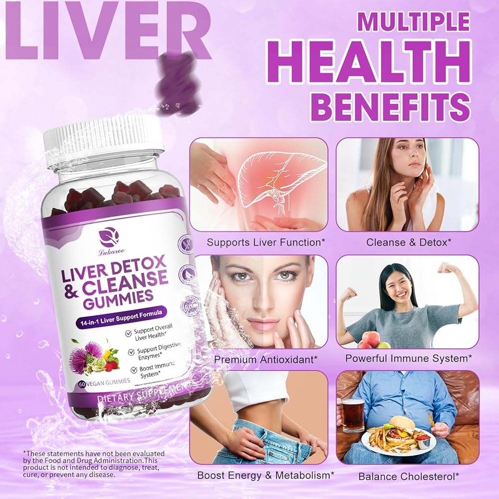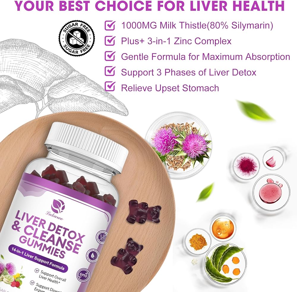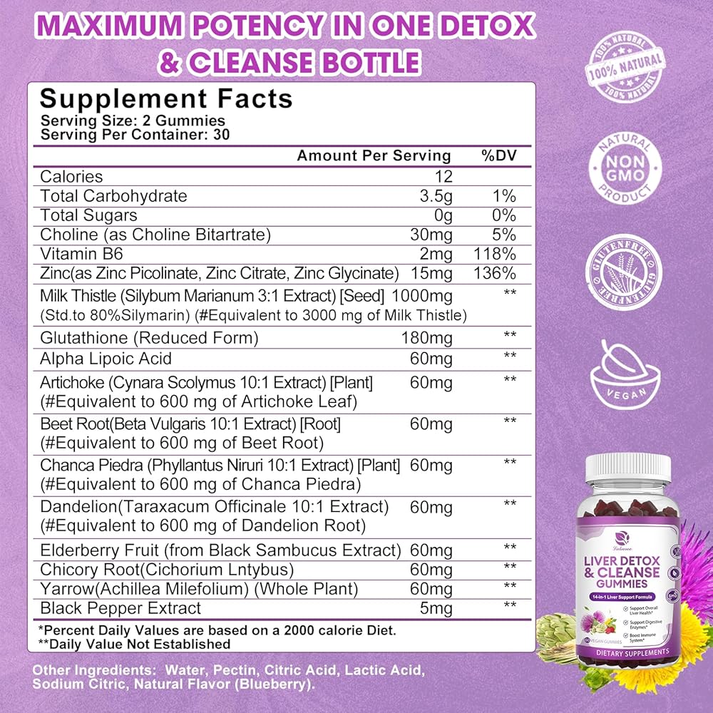 تطهير الكبد من السموم وإصلاحه - تركيبة جديدة مكملة لدعم الكبد مع الحليب الشوك سيليمارين والهندباء ومستخلص الخرشوف ونبات البلسان - بدون سكر، مكمل لصحة الكبد - 60 علكة نباتية