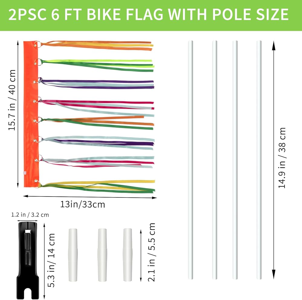 قطعتان من علم الدراجة مع عمود ارتفاع قابل للتعديل بطول 6 أقدام، علم سلامة الدراجة، تحذير محسن ورؤية الاستخدام على الدراجات، وعربات الأطفال، وعربات الأطفال