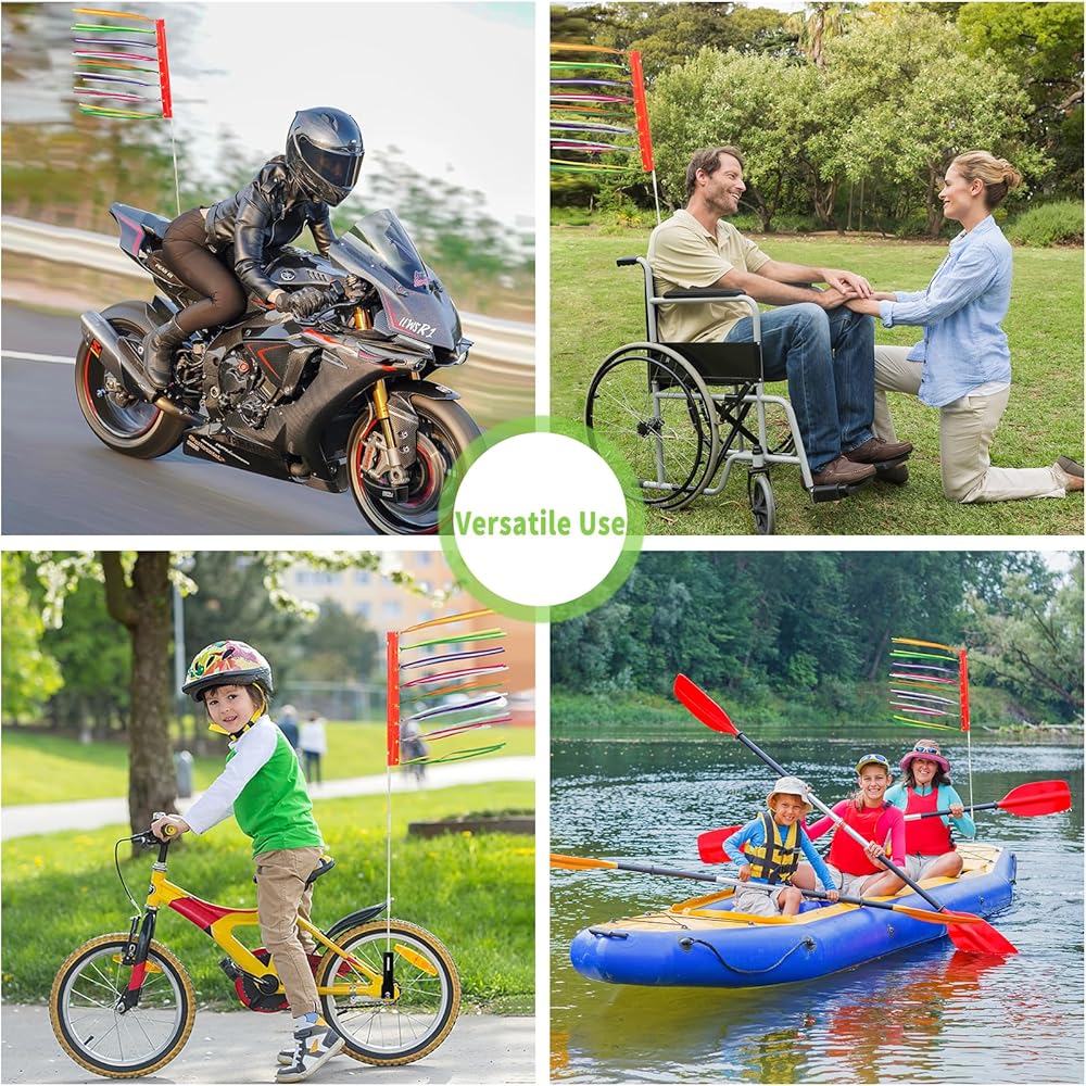 تركيب سهل ومرفق آمن: التثبيت سهل للغاية مع دعامة التثبيت المتضمنة. ما عليك سوى ربط العلم بشكل آمن بدراجتك أو غيرها من المعدات.