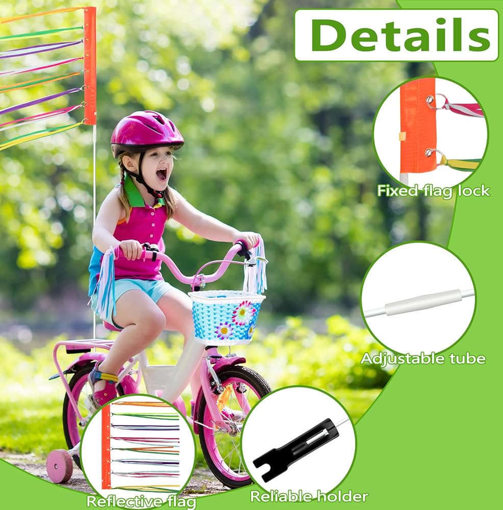 ارتفاع قابل للتعديل للاستخدام متعدد الاستخدامات: يتميز علم الدراجة بعمود قابل للتعديل. مناسبة للبالغين والأطفال على حد سواء، ويمكن استخدامها على الدراجات وعربات الأطفال والعربات الصغيرة والمزيد.