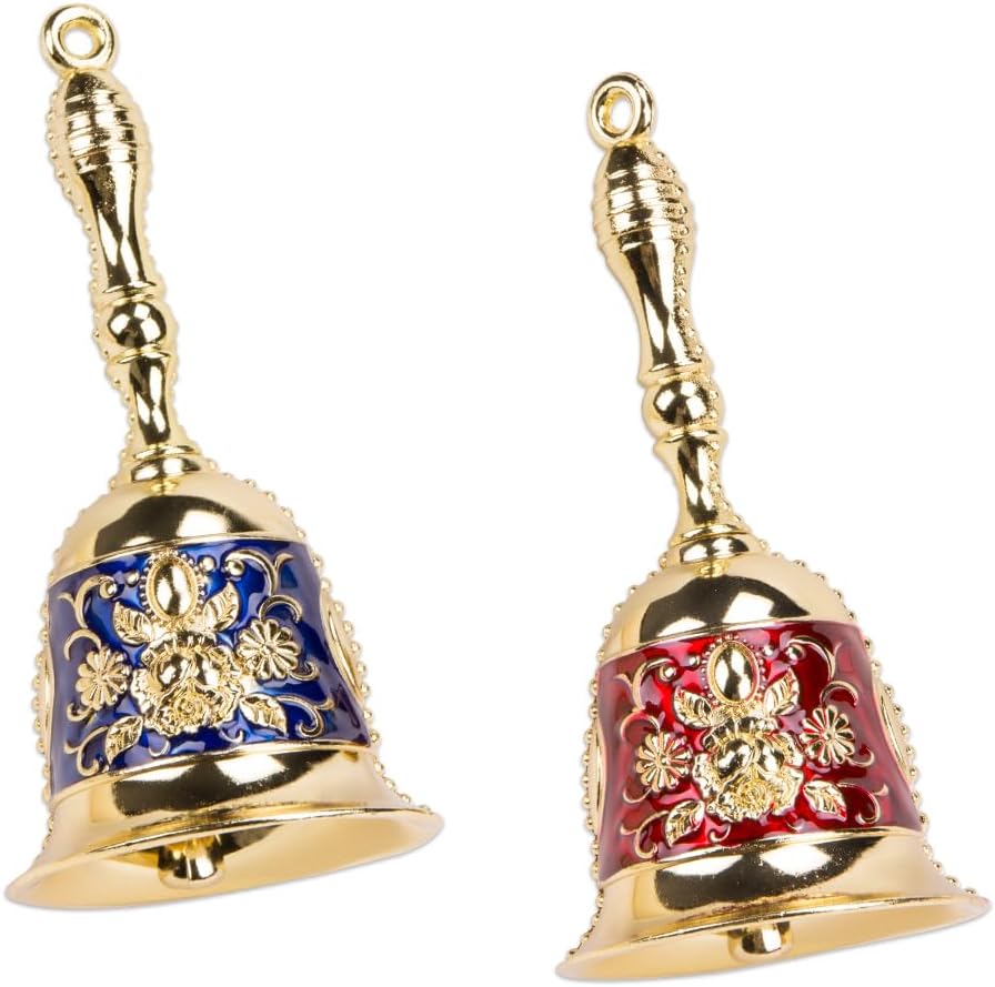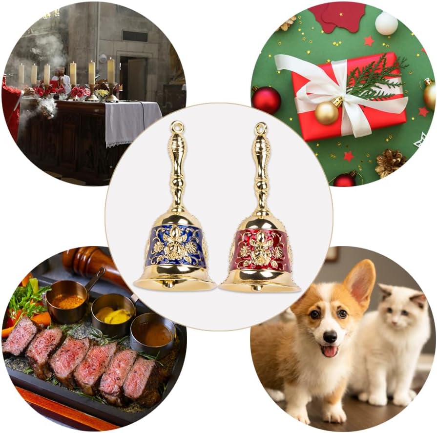 ZORZA 2 قطعة جرس نداء يدوي عتيق مع حلقة عالية الجودة، جرس عشاء متعدد الوظائف لحفلات الزفاف وتدريب الحيوانات الأليفة والكريسماس، تصميم منحوت رائع كلاسيكي للمطاعم والحانات والكنائس