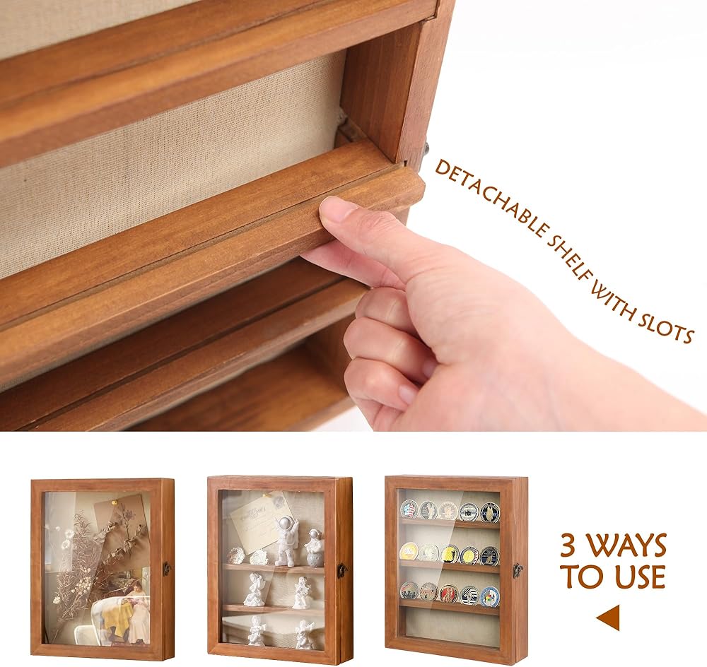 NIKKY HOME 11X14 إطارات صور كبيرة لصندوق الظلال وحالات عرض خشبية مع زجاج، وأرفف ودبابيس قابلة للإزالة، وصناديق ذاكرة خشبية لحمل العملات المعدنية للتذكارات