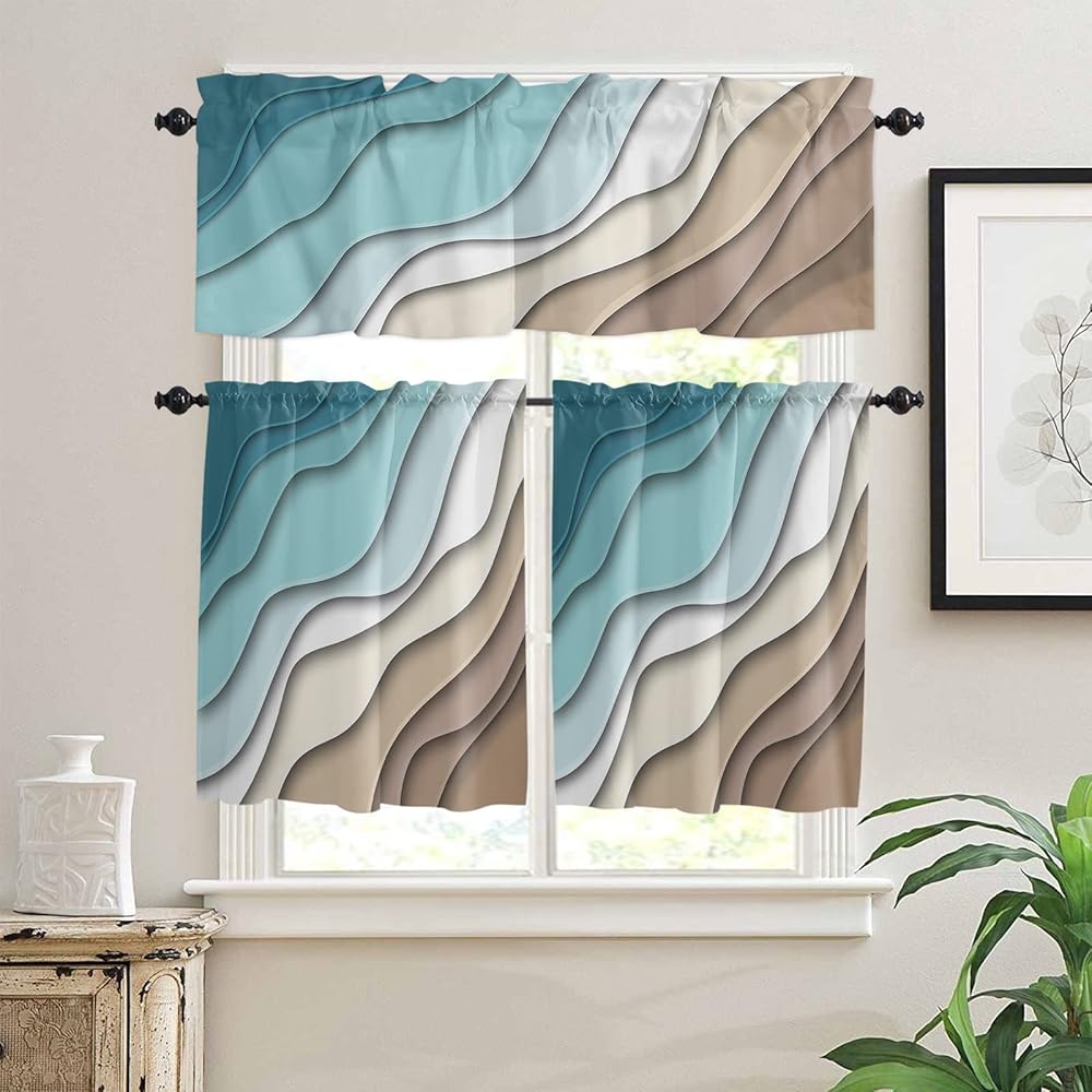 Rod Pocket Design Decoration: 3'' rod pocket window curtains is easy to install and slides smoothly, suitable for any home style decoration, creating a warm and sophisticated living environment. Curtain valance and tiers set high-definition printed pattern is classic and luxurious, painted with delicate lines bringing a stylish and artistic element to the room, small window tier curtains enrich the decor of the kitchen/cafe/laundry room while creating an innovative feel in all environments.